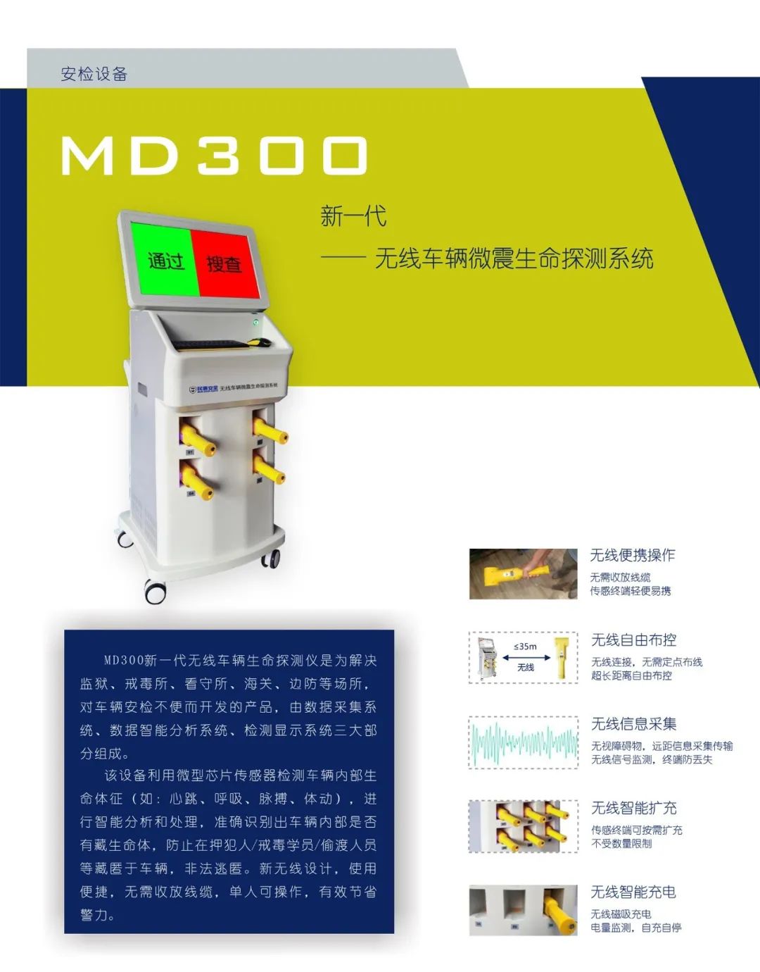 无线车辆微震生命探测系统是民盾安全针对看守所、戒毒所、监狱、边防、海关、公安卡口等场所,为助力车辆安全检查工作而开发的新一代无线车辆微震生命探测系统。