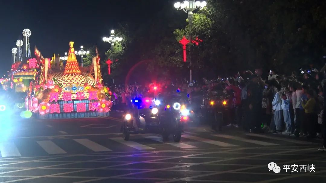 大美西峡华灯亮,万人空巷观花车。5月12日19:30—21:30,2023首届世界月季博览会花车巡游县(市、区)走进西峡,上万群众站立街道两侧兴高彩烈地观看,成为城区夜晚一道璀璨靓丽的风景。