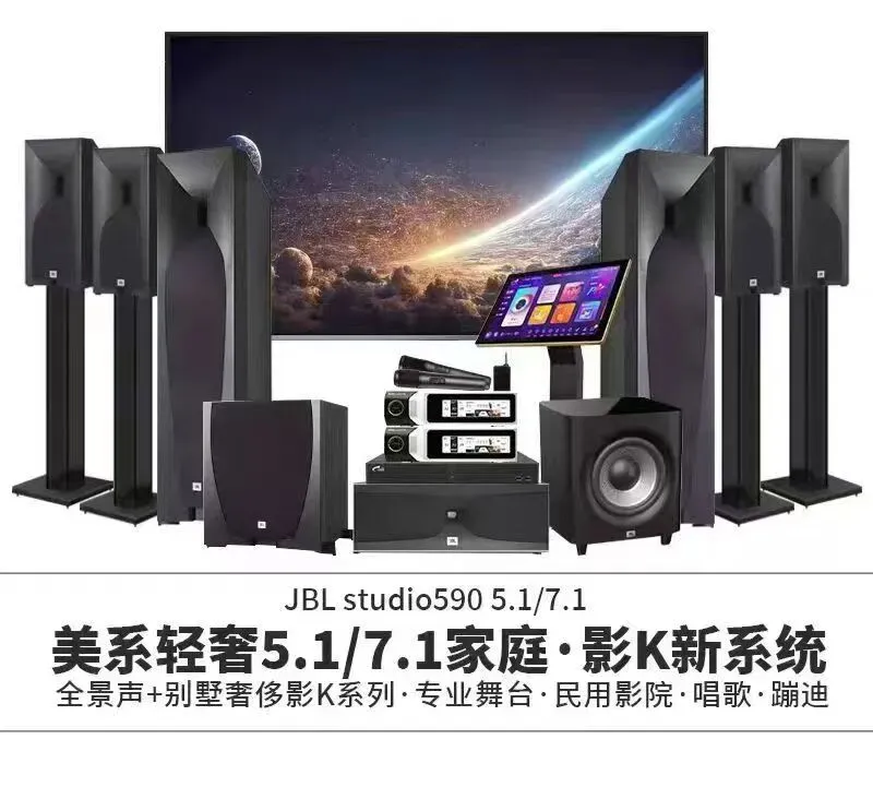 旗舰级:JBL STUDIO590 套装 – 搭载JBL专业级分频技术与大功率单元,展位体验区通电开放沉浸式体验,360°全域环绕声精准还原影片声场细节,完美复刻院线级观影质感 。