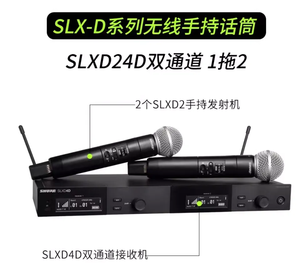同步展出 SHURE 全系列专业无线话筒,涵盖 SVX、SLXD、QLXD、ULXD 等多系列型号: