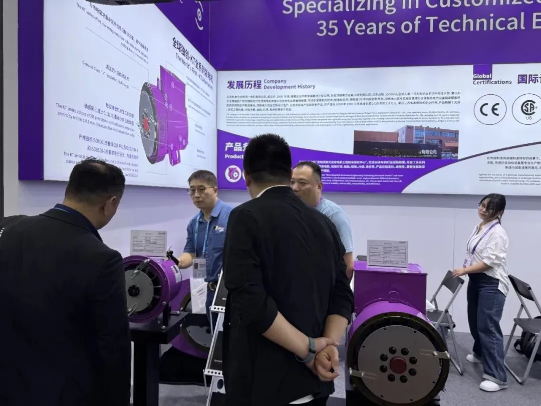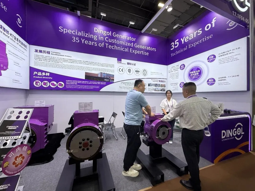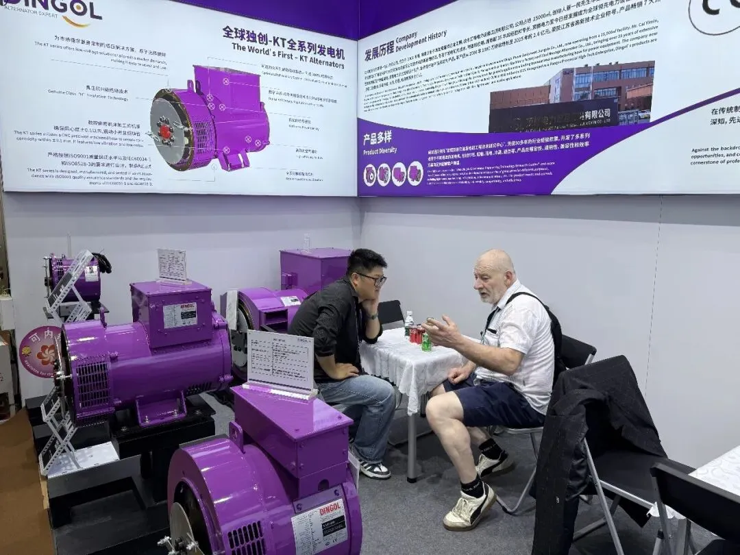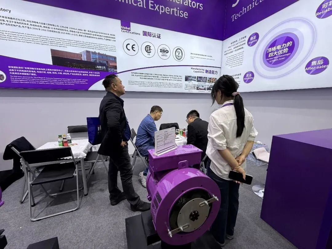 展会现场,顶格无刷交流发电机的展示,吸引众多客商驻足观看,深度洽谈。