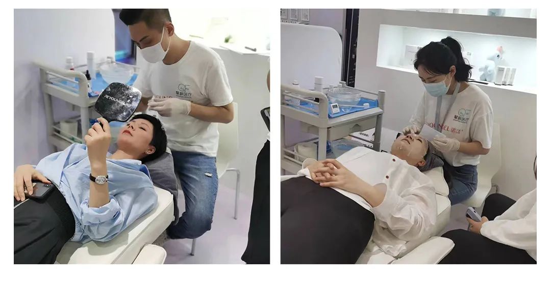 其中最受欢迎的是我们的国内首家械字号果酸(乳糖酸),不少顾客都停下来仔细了解产品,其中有之前就用过瑞漾品牌的老顾客,还有慕名而来的新顾客。