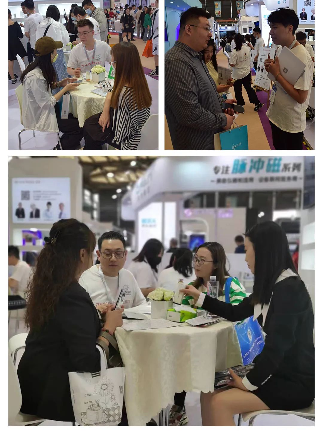 作为参展商之一的瑞漾品牌,我们的展位吸引了不少观众的目光。我们准备了多款产品,面膜、洁面乳、动能素等。