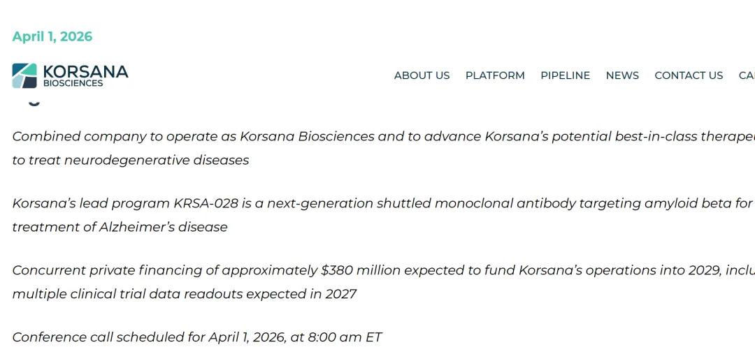 为支持本次合并,Korsana 已获得超额认购的私募融资承诺,融资总额预计约为 3.80 亿美元。