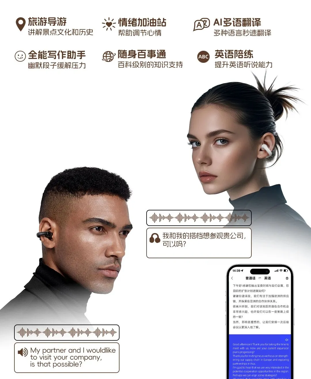 ✅ 更关键的是,搭载AI技术,戴上直接同声传译,大大提高工作效率