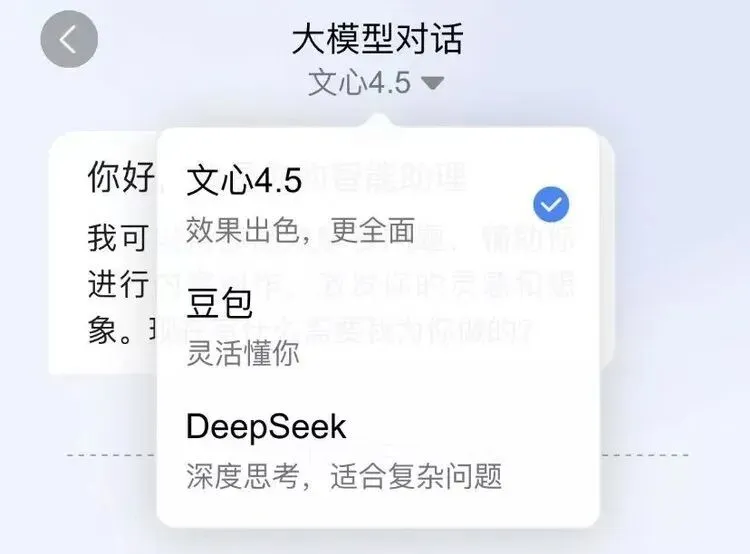 ✅ 智能AI生活体验:三大AI模型赋能——豆包、Deepseek、文心