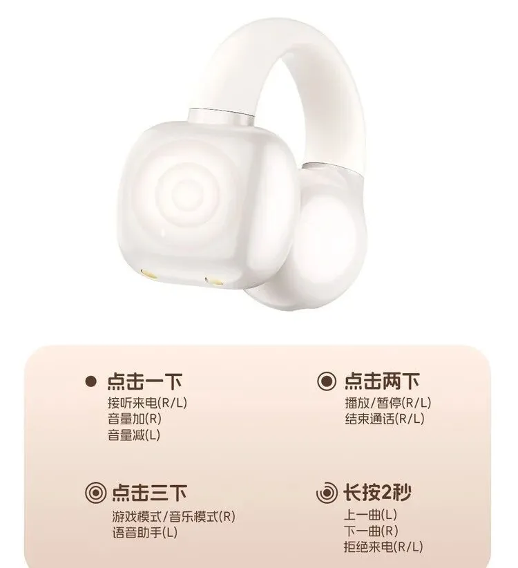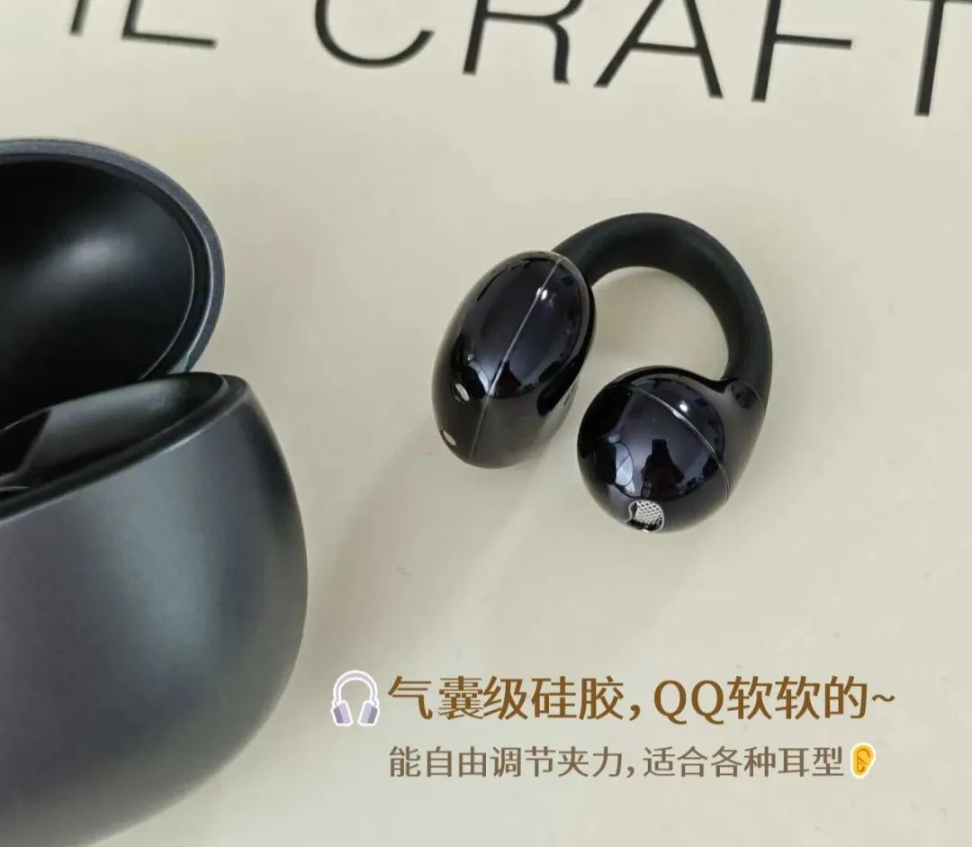 采用开放式耳夹式设计,臻选气囊级硅胶,软软的非常亲肤,触感丝滑细腻,不入耳,不磨耳、不压耳。