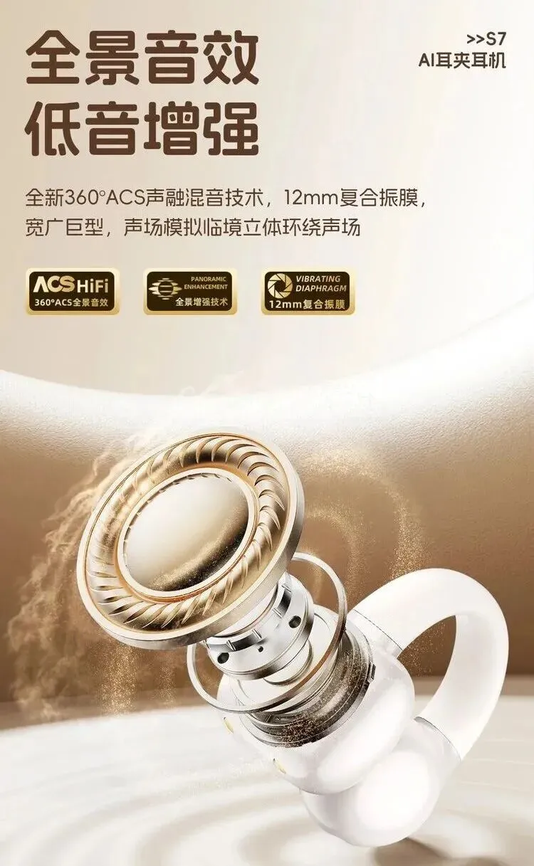 声场模拟临境立体环绕声场,虽然是耳夹式耳机,但声音的空间感很强,