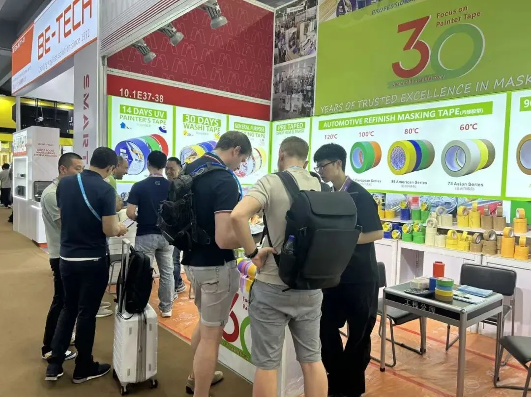 深耕行业30载,匠心筑梦赢全球。平安麒胜实业专注遮蔽胶带研发与生产30年,凭借成熟的生产实力、稳定的产品品质和良好的品牌口碑,成为本届广交会上海内外客商关注的焦点。展位内,前来咨询、体验、洽谈的客商接踵而至,既有来自欧美、东南亚、日韩等地区的老客户,也有不少慕名而来的新伙伴,大家纷纷驻足查看展位上陈列的核心产品,对美纹遮蔽胶带、和纸胶带、汽修专用胶带、遮蔽纸、遮蔽膜、PE保护胶带等表现出浓厚兴趣。