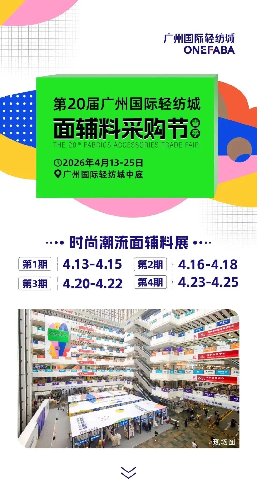 第20届广州国际轻纺城面辅料采购节(春季)应时而生,这不仅是一场行业盛会,更是国际轻纺城助力纺织产业升级、畅通内外双循环的实力担当,为纺织行业发展写下浓墨重彩的产业篇章。时光镌刻耕耘,岁月见证辉煌。自 2015 年首届举办以来,广州国际轻纺城面辅料采购节已稳健走过十九届征程,从初露头角到享誉全球,从单一展会到全产业链盛宴,早已成为中大纺织商圈乃至全国面辅料行业的标志性盛会,牢牢占据行业风向标与潮流策源地的核心地位。每一届采购节,都是行业资源的高效聚合,都是供需双方的精准对接,更是中国制造走向世界的重要窗口,被众多参展商户由衷称赞为 “真正在家门口的全球展会”,无需远赴他乡,便能坐拥全球商机。