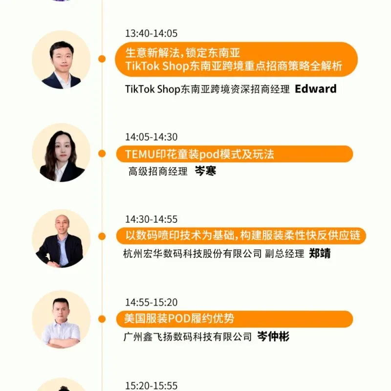 本届峰会以“创新驱动·柔性智造·全球掘金”为主线,汇聚跨境电商平台、数码印花设备龙头、POD柔性供应链专家、AI设计先锋,围绕东南亚及欧美市场机遇、服装柔性快反、潮牌DTG工艺升级、AI设计驱动POD等核心议题,为行业带来一场高密度、高价值的思维盛宴。