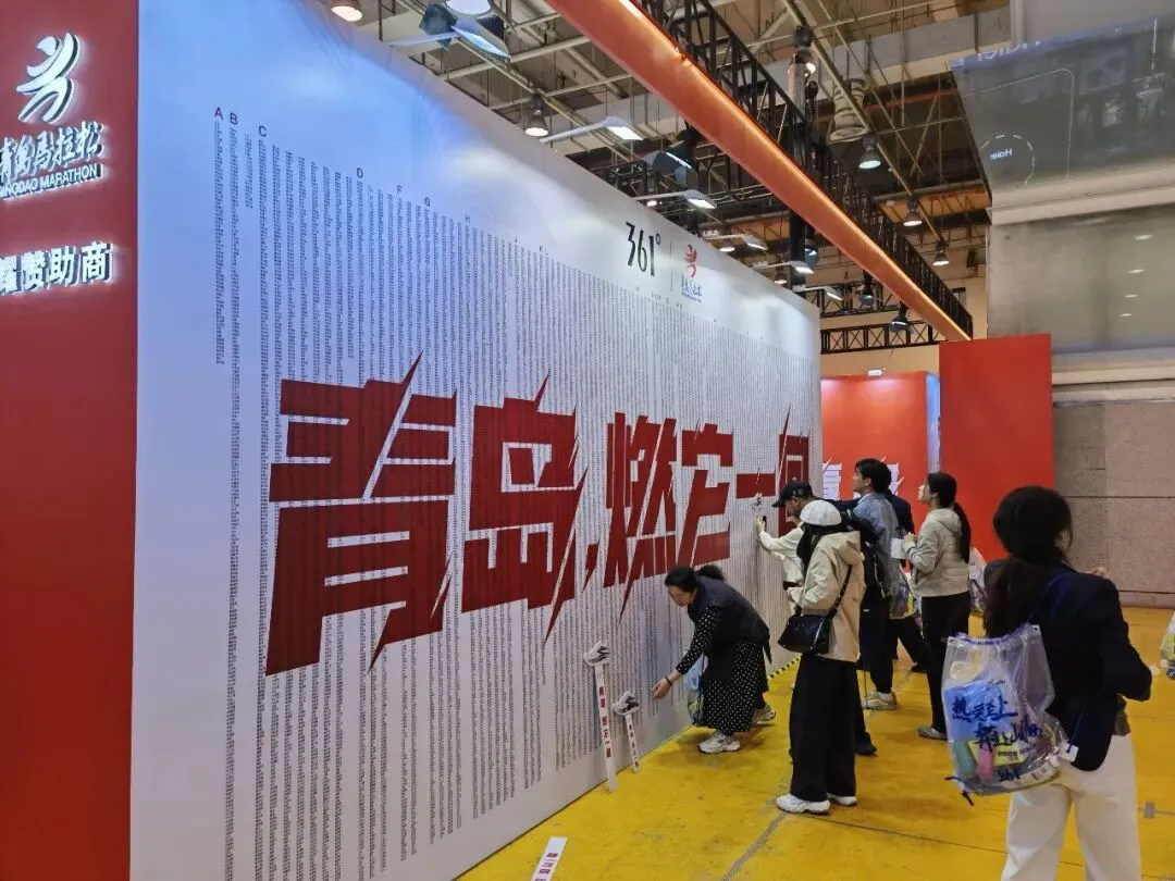 博览会现场设置物资领取区与品牌展示区,为参赛选手提供高效便捷的参赛包领取服务,助力跑者从容备战。今天一大早,来到这里领取装备的跑友,大都是青岛本地人。人到中年的张婷这次是第一次报名参赛,没想到第一次“尝鲜”,就幸运地获得半马的比赛资格。“人到中年,感觉身体有点问题了。在朋友的鼓励下,开始跑步。”张婷介绍说,“在跑友的帮助下,一点点增加自己的跑步距离,也逐渐适应了半马的距离。这次报名想试试,没想到第一次报名就成功了。”对于自己参赛的目标,张婷表示,“和闺蜜一起参加,安全完赛就是目标。”