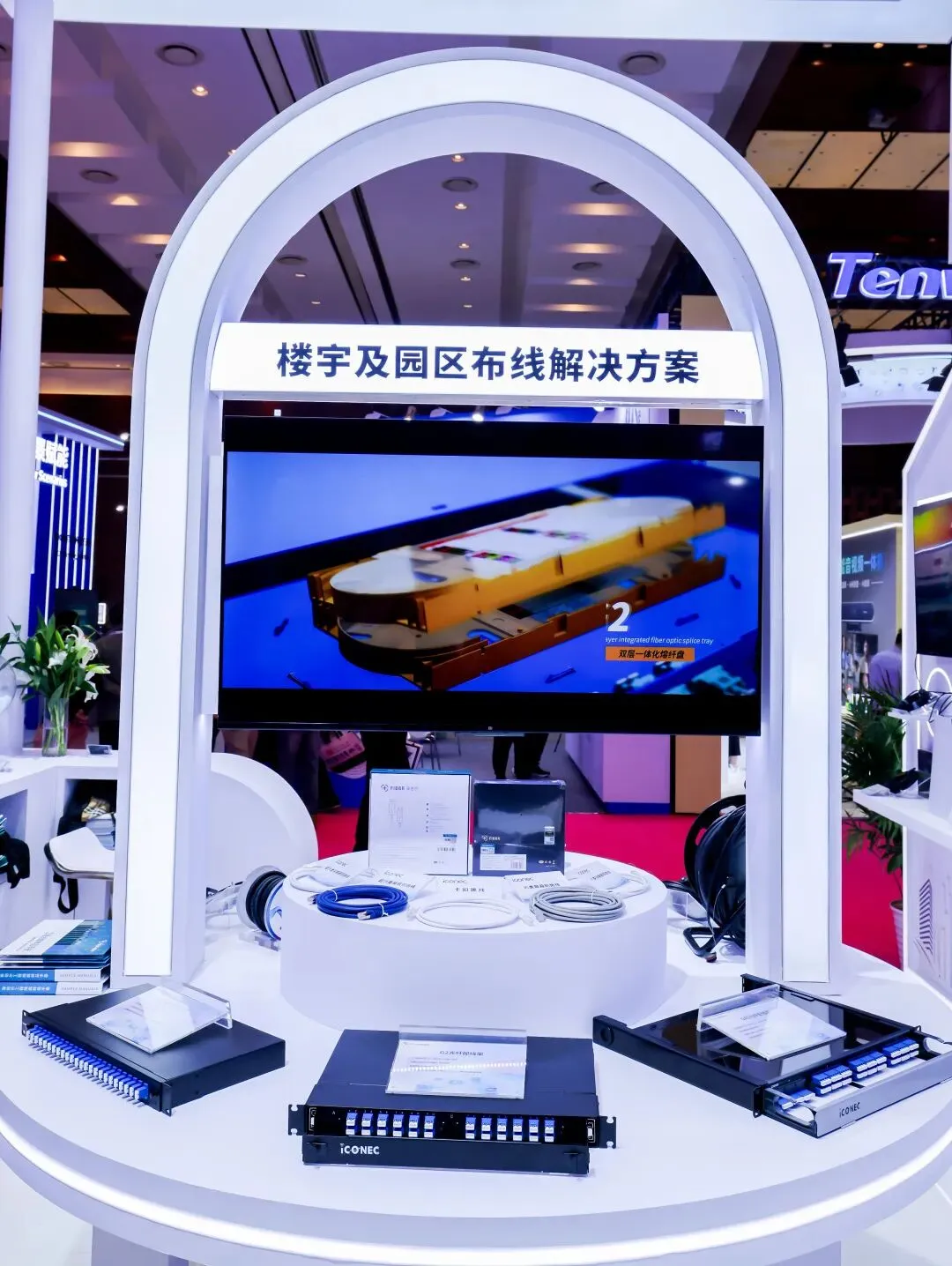 作为长飞公司、长芯博创旗下唯一专业从事综合布线业务的子品牌,iCONEC此次以AI智算枢纽解决方案及楼宇园区布线解决方案重磅亮相,全面覆盖从核心数据中心到边缘应用场景的连接需求。