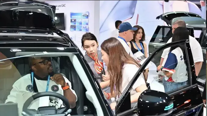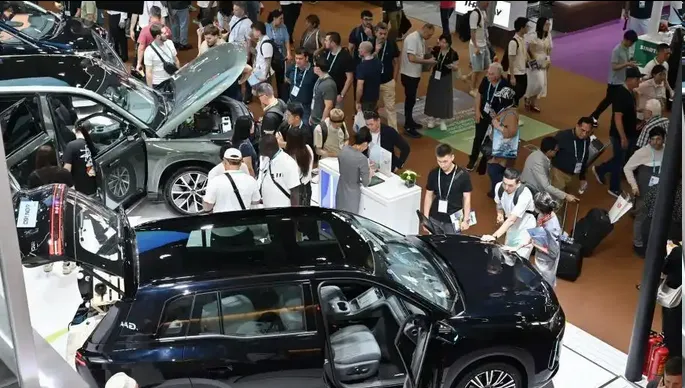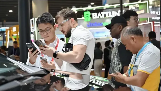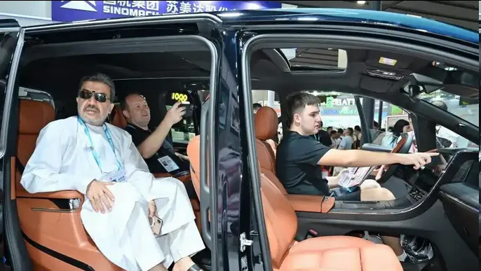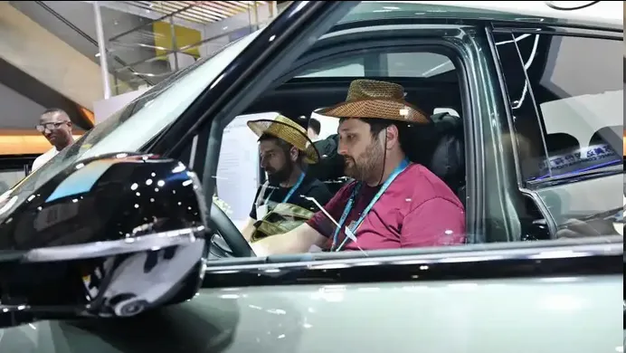 4月16日,境外采购商在广交会展馆体验新能源汽车。第139届中国进出口商品交易会(广交会)于4月15日至5月5日在广州市分三期举办。据中国汽车工业协会最新发布的数据显示,2026年1-3月,中国新能源汽车出口95.4万辆,同比增长1.2倍。