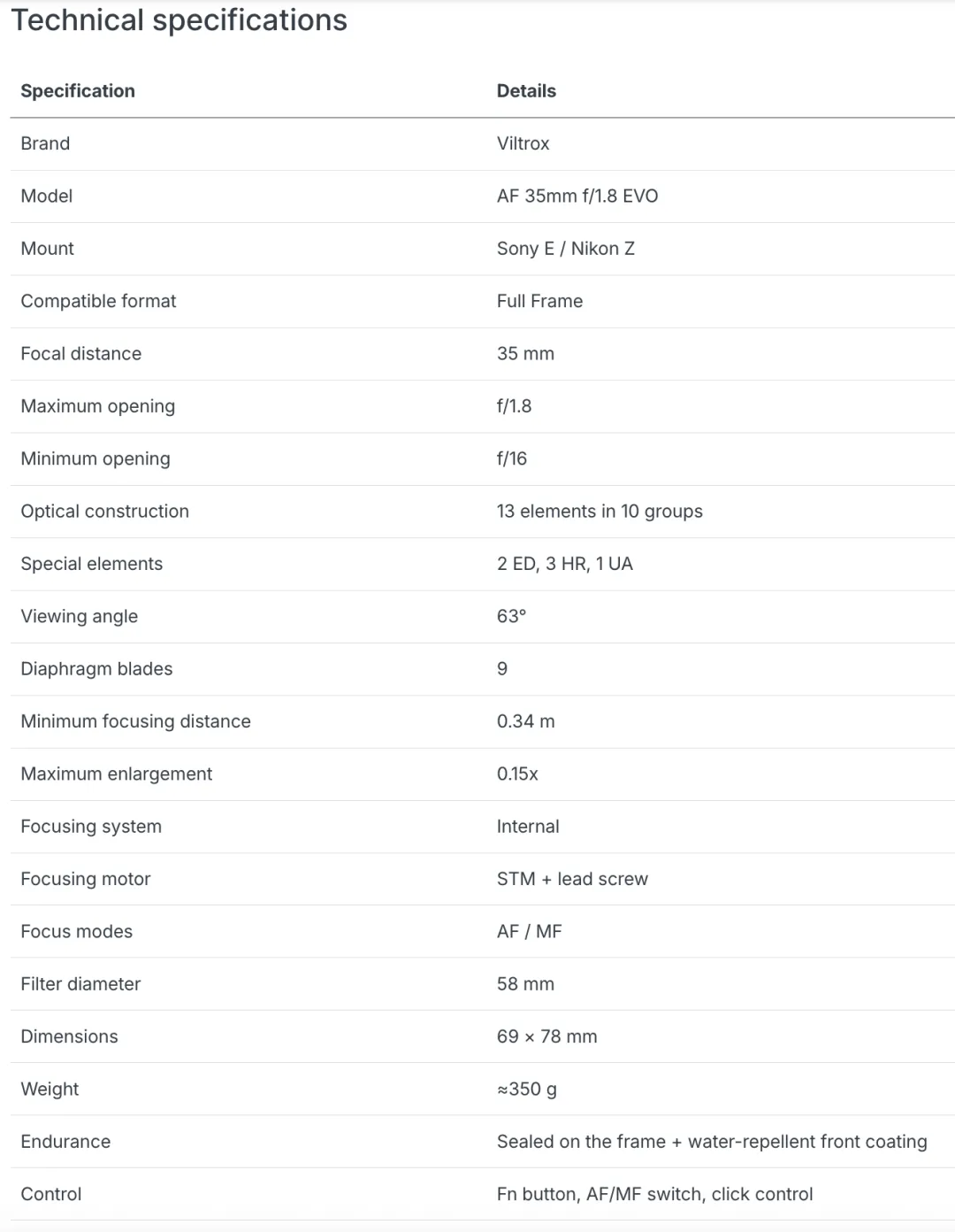 AF 35mm f/1.8 EVO 镜头最近对焦距离为 0.34 米,让您能够探索更近距离的构图,同时保持出色的锐度和光学特性。35mm 的焦距和 63° 的视角,在画面细节和真实感之间实现了理想的平衡,使其成为视觉叙事中极其灵活多变的选择。