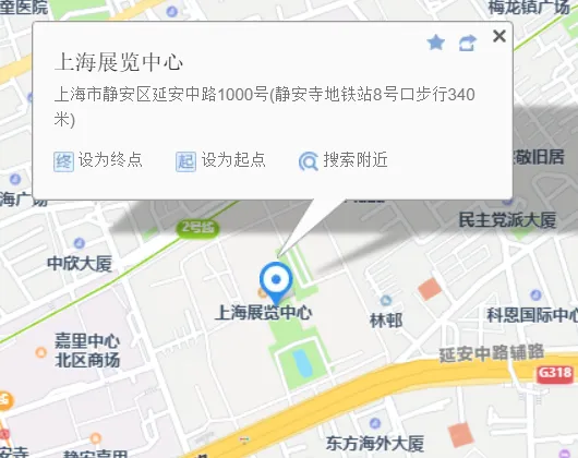 地铁2、7、14号线至静安寺站,8号口出,步行500米到达展馆
