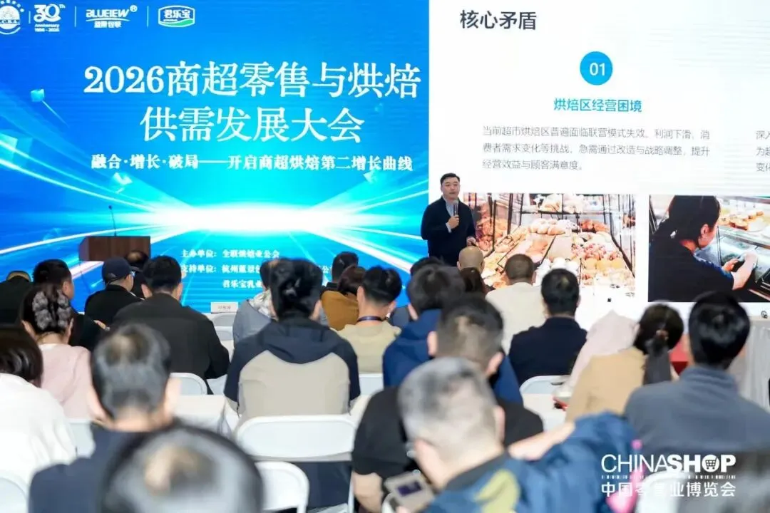 “商超零售与烘焙供需发展大会”以“融合·增长·破局——开启商超烘焙第二增长曲线”为主题,就烘焙品类如何驱动门店增长、温区设置、消费洞察、供应链柔性设计及调改过程中的挑战与机遇等议题展开了全面探讨。
