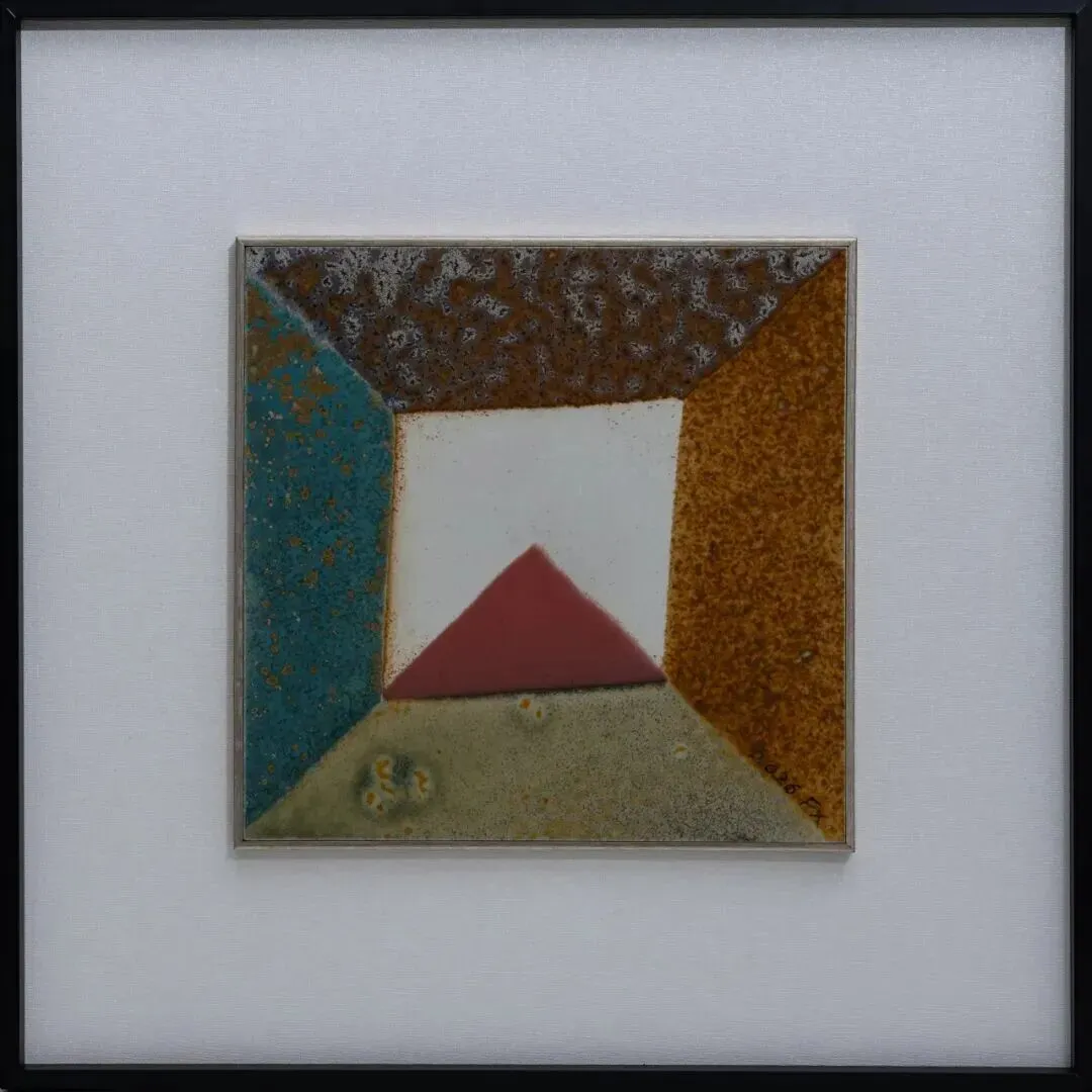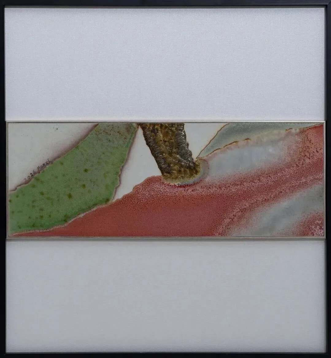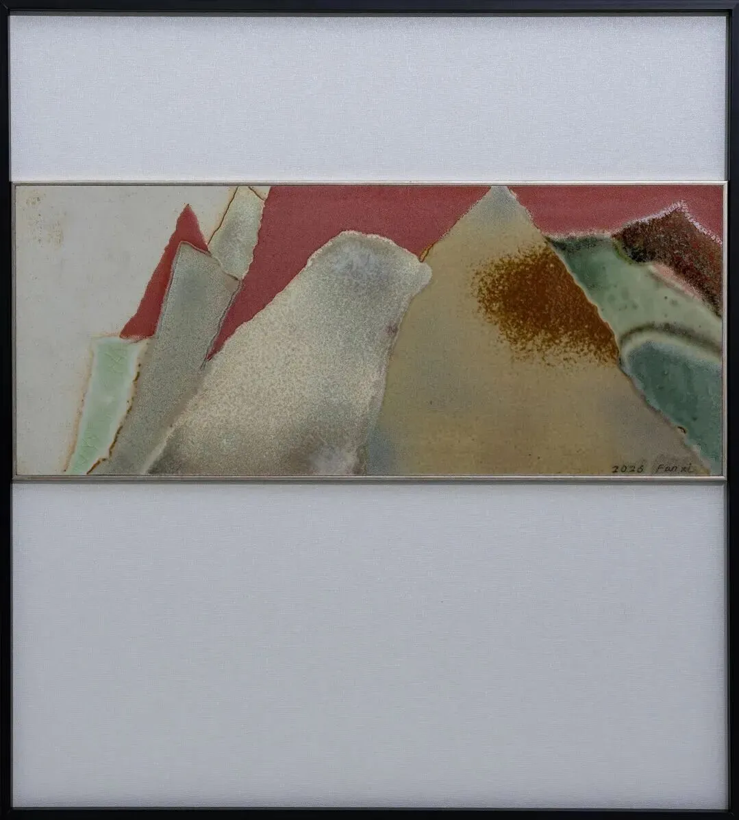 “焰色景德”龚余辉陶瓷艺术小品展通过《川-计划》系列作品将传统文人画的美学精神与当代陶瓷视觉语言并置,形成跨越时空的融合。作品表现破坏过的自然景观、生态失衡等,隐喻对天人合一意境的向住。作品并非简单模仿自然山川,而是对其进行“构成式”当代直觉表达。作品幅面为泥土与高温颜色釉材料,工艺古朴而不失当代性,运用“构成式”山水形态,多重几何状表现抽象的山“川”。《川-计划》系列是以东方文化为底色,试图在传统与当代、本土与全球之间寻找陶瓷艺术的新路径。