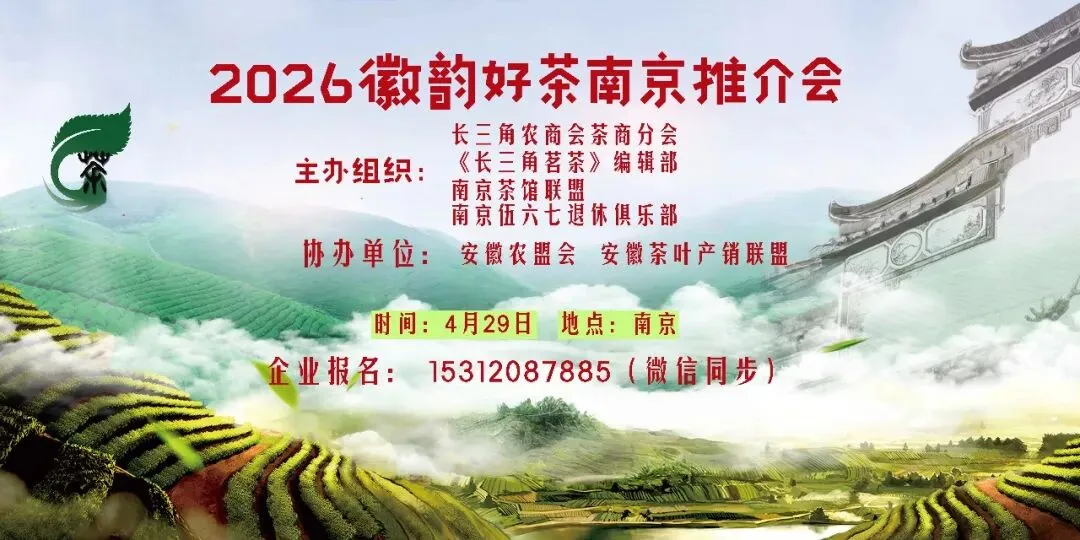 2026徽韵好茶南京推介会4月29日举行由长三角农商会茶商分会、《长三角茗茶》编辑部、南京茶客会、南京伍六七退休俱乐部等单位共同主办的2026安徽品牌茶企南京推介会定于4月29日下午在南京举行。