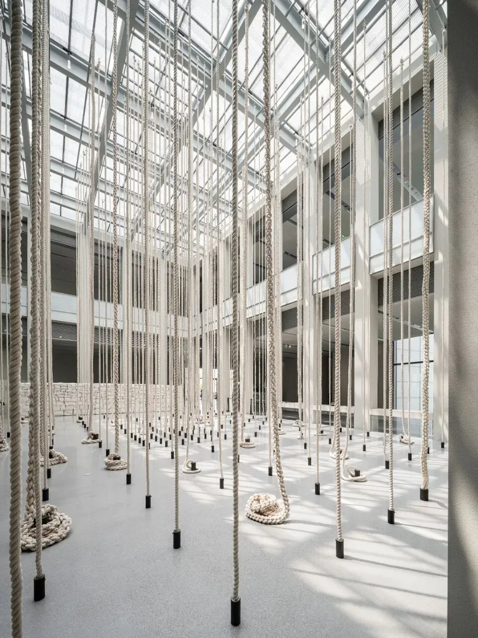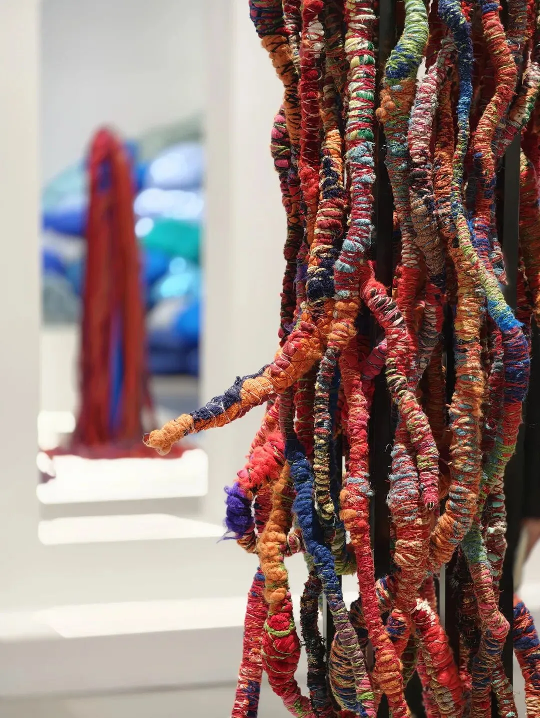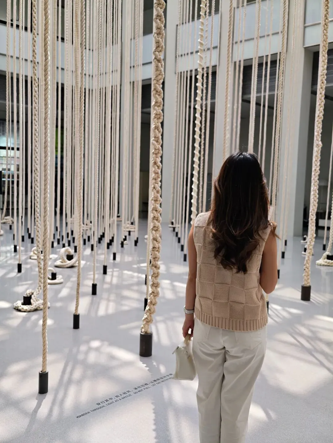她通过不同形状与质感的编织,邀请公众步入这座既可被观看,也可被“阅读”的“园林”。这个空间内的作品不设展签标题,并鼓励公众通过转身回看的方式,想象材料延展出的感官世界。