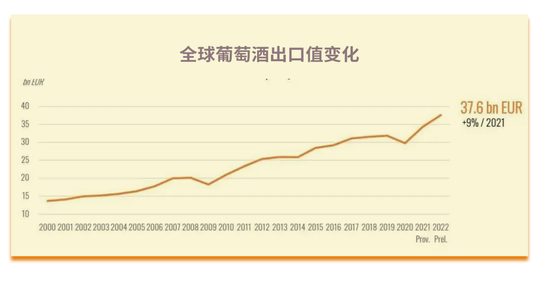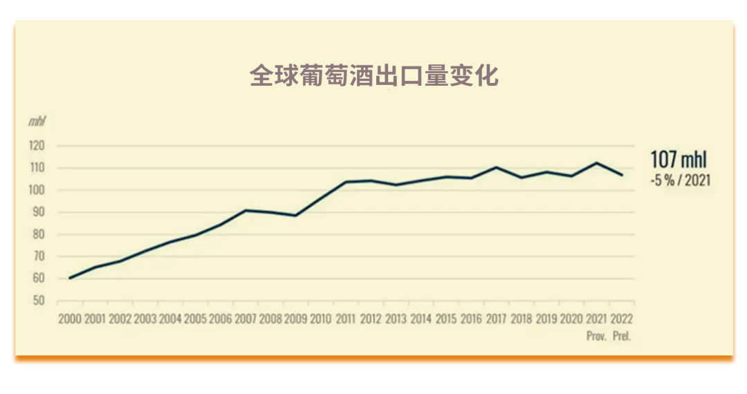 2022年,起泡葡萄酒出口量和出口值均出现了增长。起泡葡萄酒仅占全球葡萄酒出口量的11%,但出口值占到了23%。2022年,起泡葡萄酒的出口量和出口值较2021年分别增长了5%和18%。
