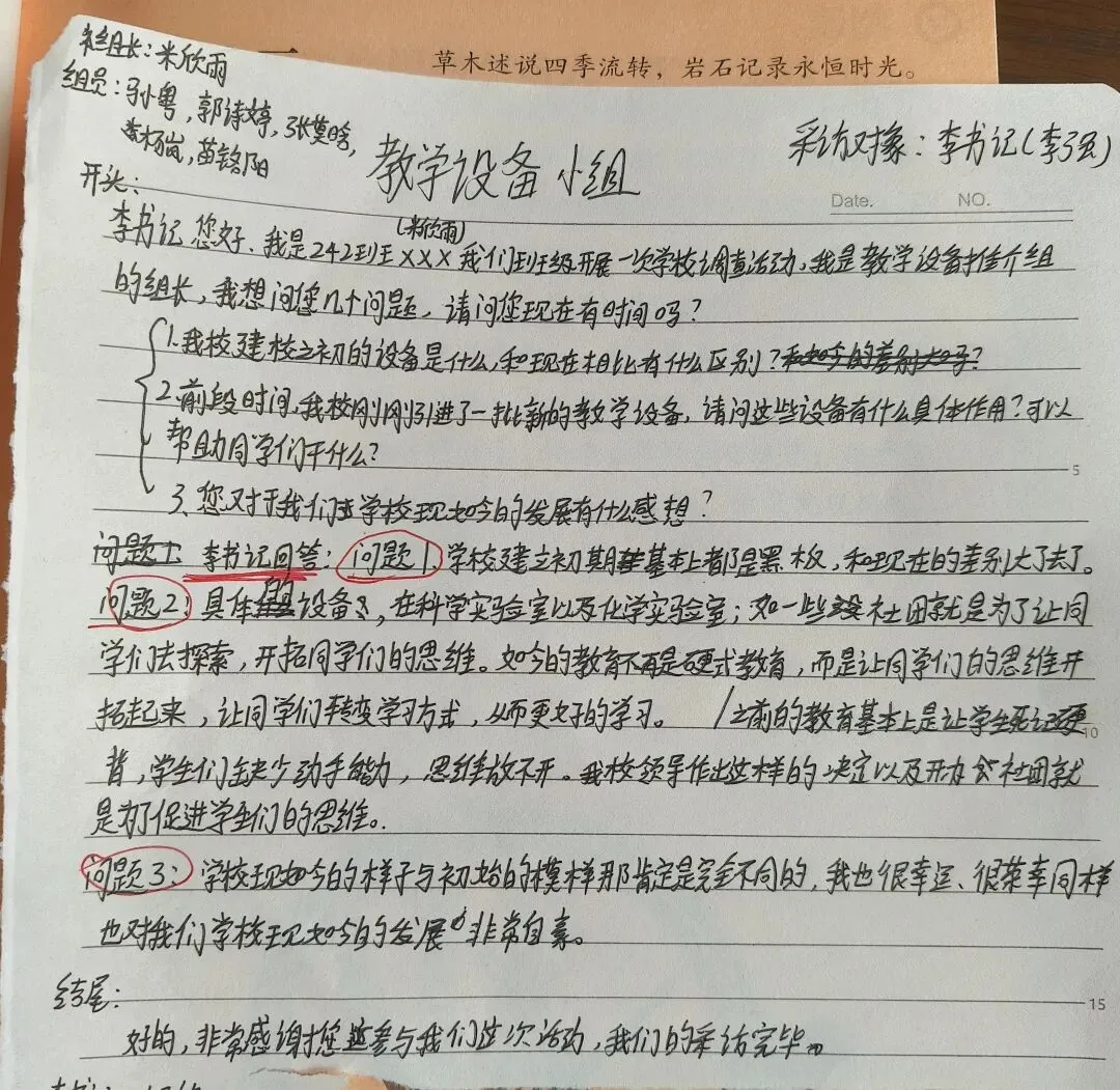 4.小组成员分工。组长提问,1人摄像,其余人记录。