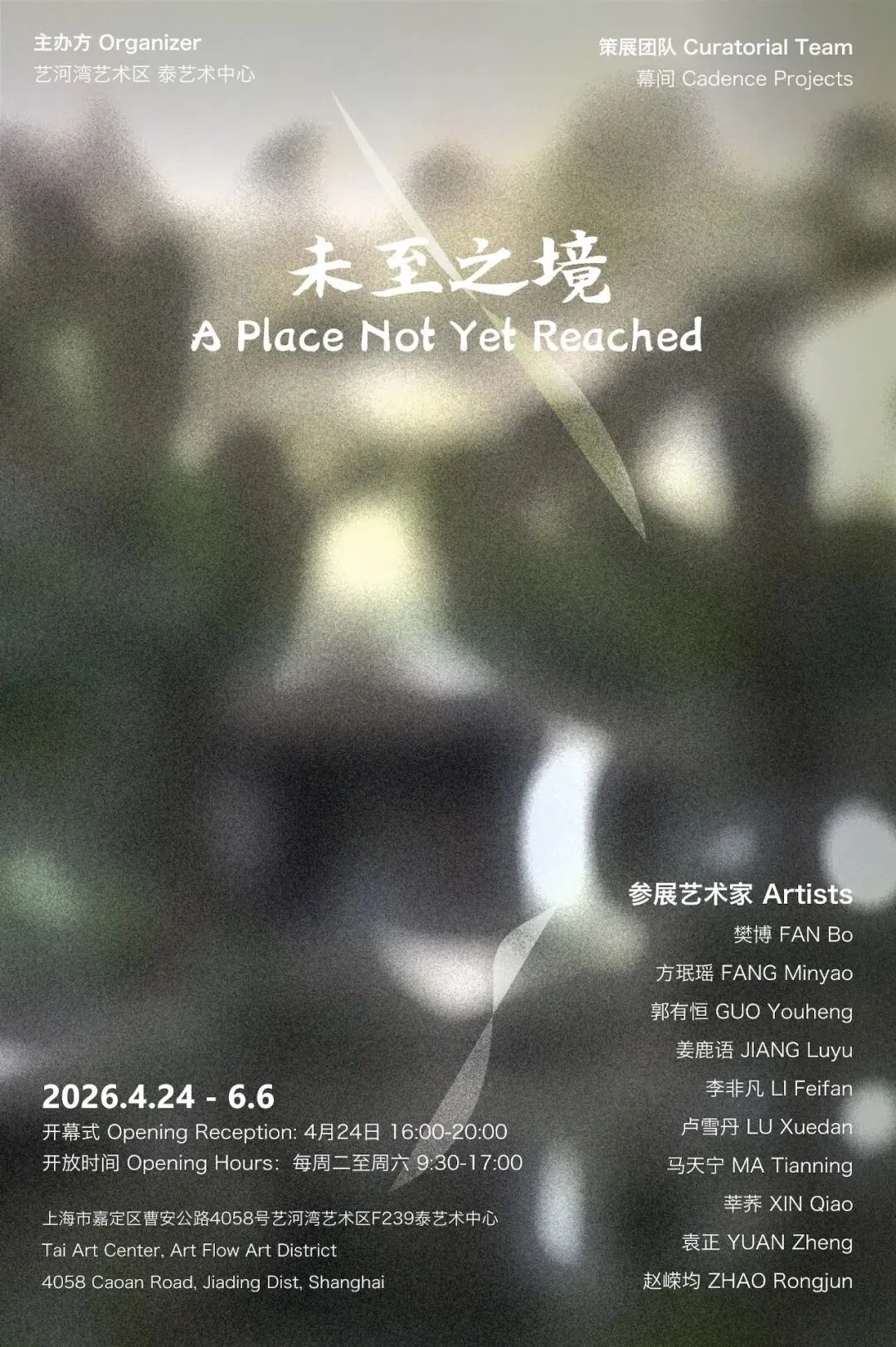 自“开放巢”展览计划征集发布后,我们收到众多优秀的展览提案,非常感谢各位艺术家朋友对于艺河湾项目的支持与参与,经过首轮评审与讨论,其中由团队幕间 Cadence Projects (赵嵘均、马天宁、樊博)所提交的展览方案《未至之境丨A Place Not Yet Reached》获选。展览团队以“接近”而非“抵达”为策展视角,从中国园林“借景”逻辑中提炼策展语言,通过十位艺术家的多元媒介,在作品间隔与互望中让意义自行生成。该方案兼具思想深度与落地可行性,亦于“开放巢”所鼓励自由探索的初衷相契合,因而获选。