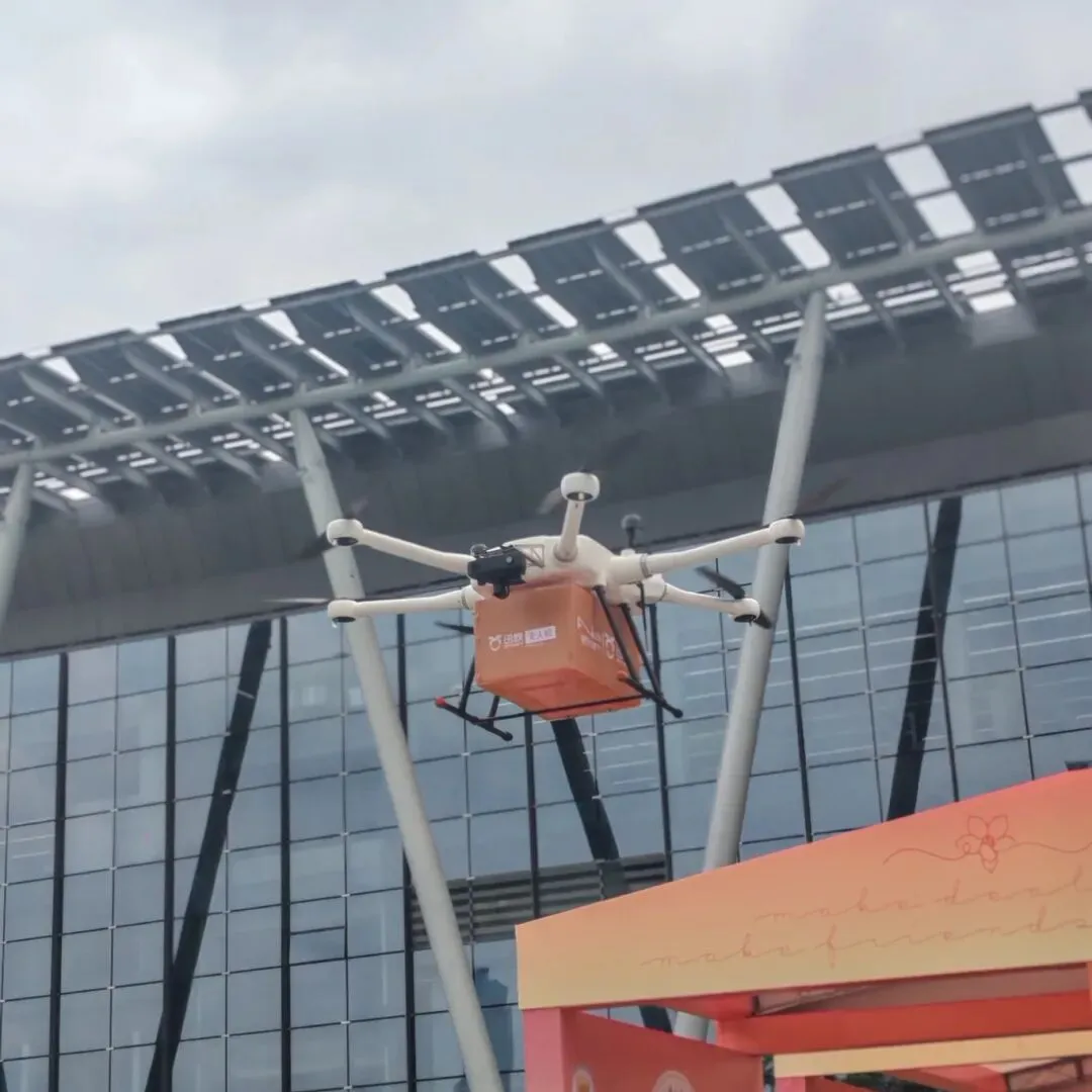 广交会工作人员赵梓露介绍说,无人机及配送服务是广交会琶洲魔方项目的一个 AI 场景延伸,我们希望在广交会众商云集的场所做新技术探索,能够为实现最后一公里配送技术延伸。