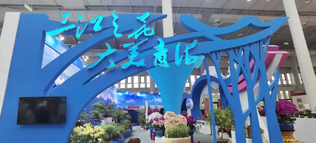 青海展区分室内和室外,室内展区面积200平方米,以蓝白色为主,体现了多民族文化交融和山川江河雄伟的特色,浓缩了青海自然地貌特点和生态文明建设以及花卉业发展成就。展台摆放着青海特色的倒挂金钟、唐菖蒲、郁金香、芍药、柽柳、匍匐栒子等盆花、盆景、现代插花、奇石、盐花等,尤其展示指尖上的非遗——酥油花等展品和背景画面融为一体,体现了大美青海意境和内涵。青海室外展园占地面积3000平方米,以青海地方特色花卉植物为主要展示内容,同时融入三江源、河湟民居、柳湾彩陶及民族饰品等景观元素。室外展园以场地中间象征三江源的水系为中心,分入口景观区、河湟风情景观区、和谐家园景观区、山宗水源景观区、生态高原景观区五个展示区,通过微型景观体现青海的生态文明之花、和谐美丽之花、民族团结之花、人民幸福之花。