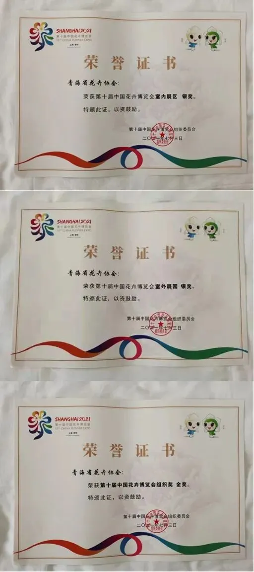 在此次花卉博览会上,青海取得丰硕成果,青海省花卉协会获得组织金奖,青海省花卉协会7人获得“先进工作者”荣誉称号;青海室外展园、室内展园均获得银奖;西宁市林科所选送的丁香新品种选育和推广应用等获得花卉科研成果铜奖3项;青海省国家级非物质文化遗产—“酥油花”获得花博会展品“特别奖”;在我省选送的16大类156项参展花卉展品中,鲜切花、盆栽植物、盆景、干花工艺品等近70项参展展品分别获得展品金奖、银奖、铜奖。会后青海室外馆和酥油花赠送给上海市崇明区人民政府,并由其负责相关管理维护。