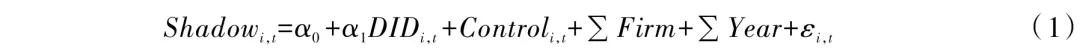 本文将2012年出台的《指引》作为一项准自然实验,以此构建双重差分模型(1)来实证检验假说H1,即绿色信贷压力下重污染企业是否会选择影子银行融资作为替代性融资渠道。