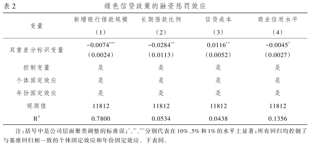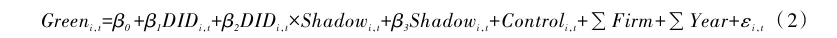 还构建了模型(2)来实证检验假说H2,即重污染企业影子银行融资规模是否强化了绿色信贷政策倒逼其进行绿色转型的政策效果。