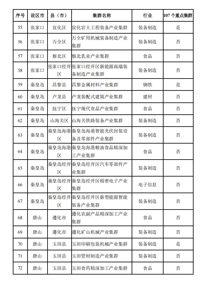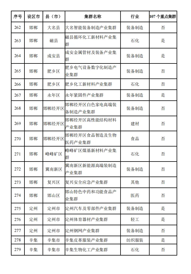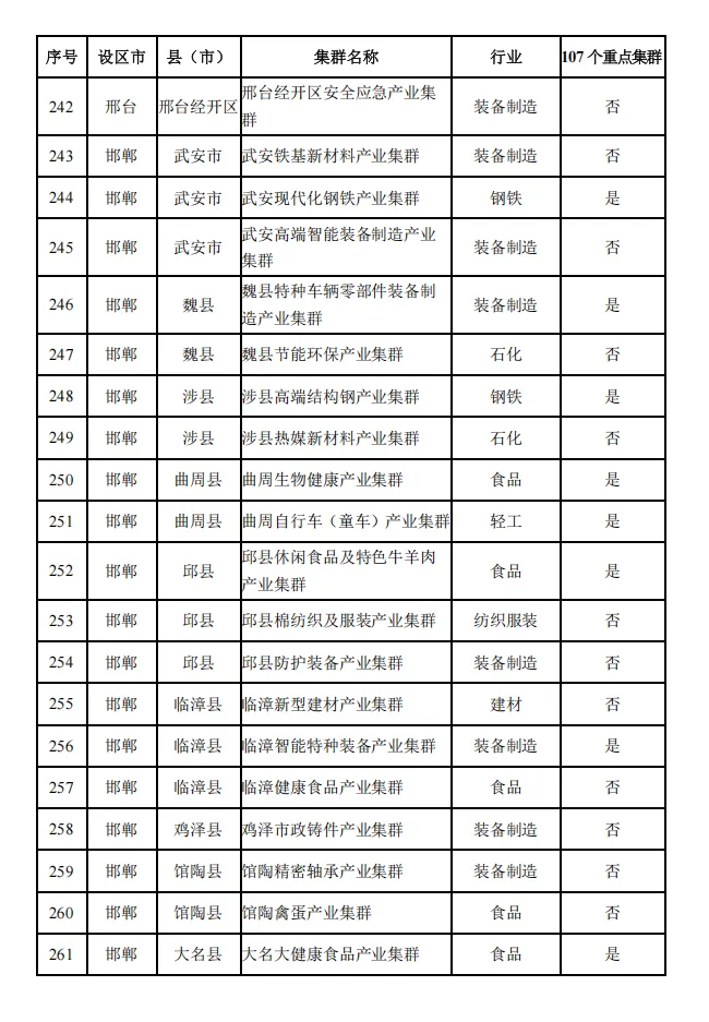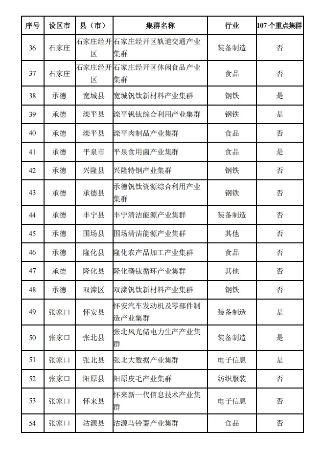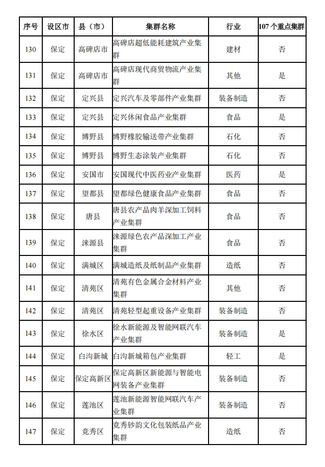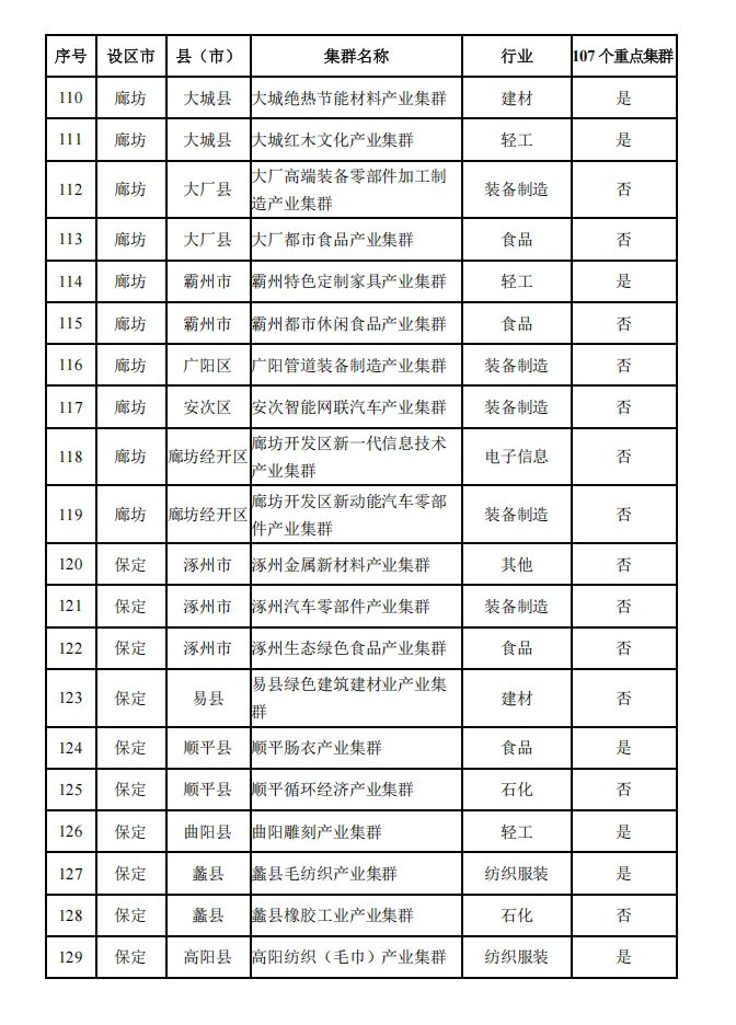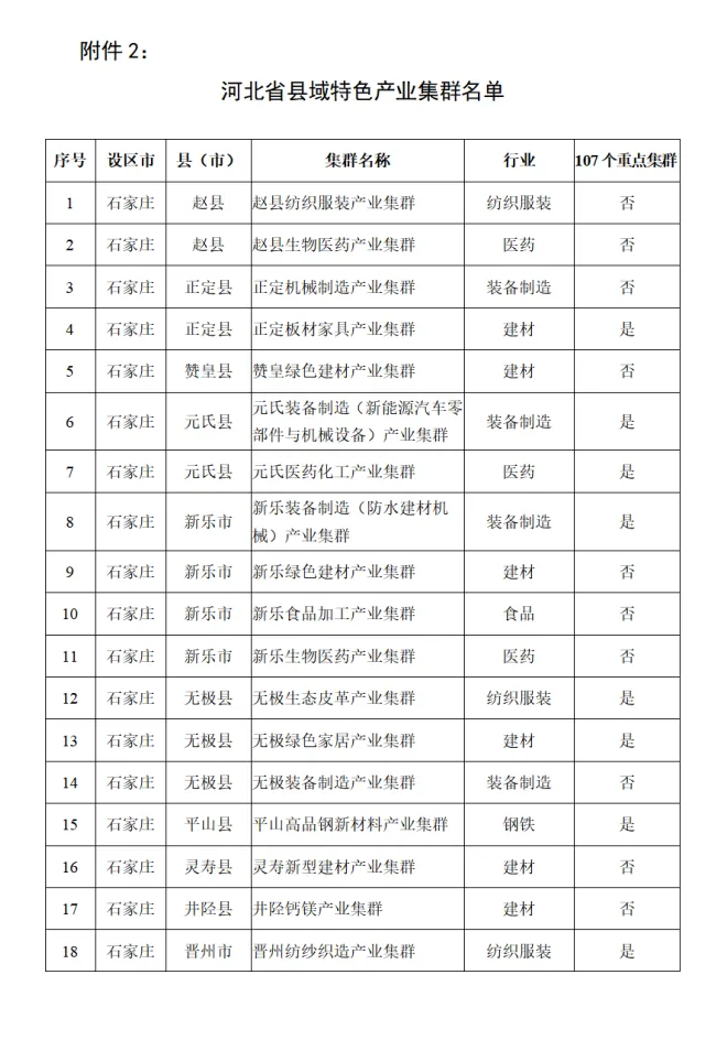 河北省县域特色产业集群名单