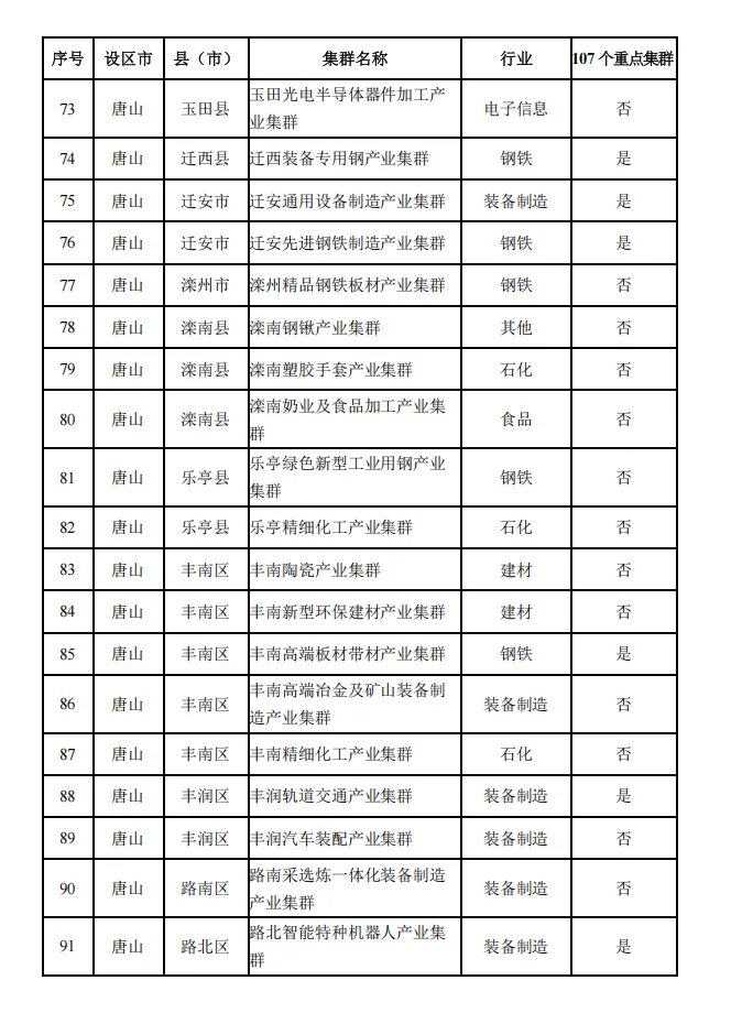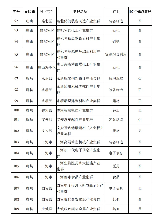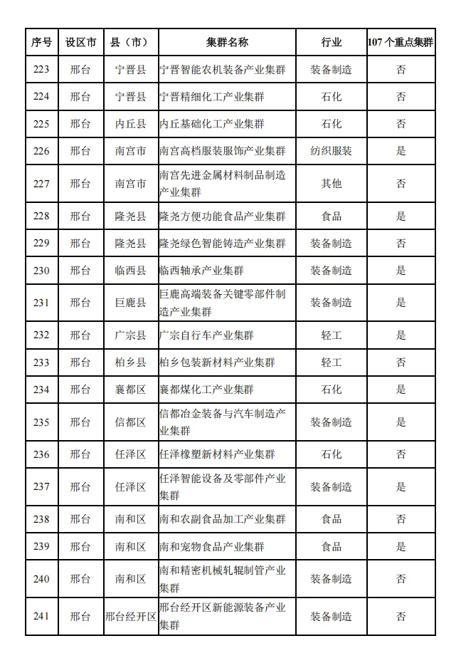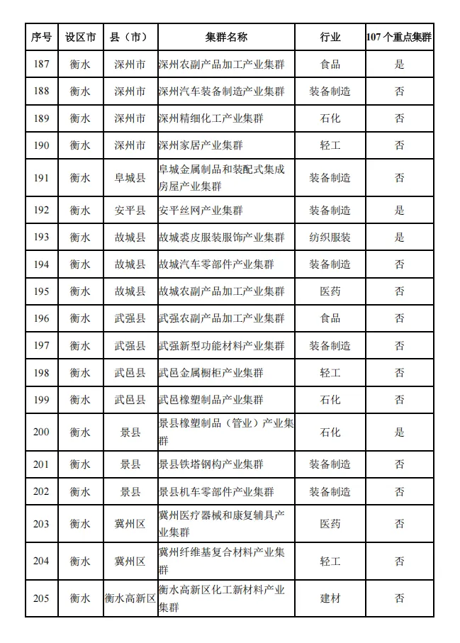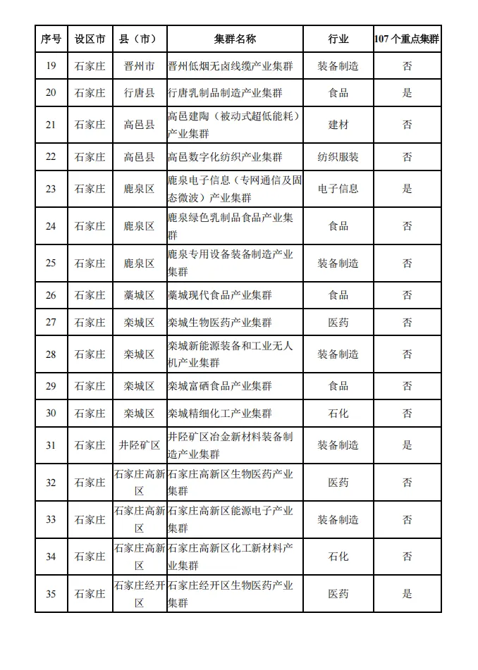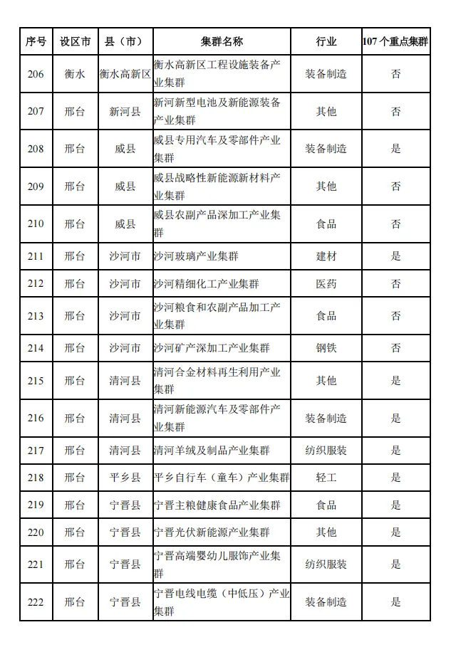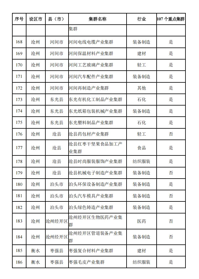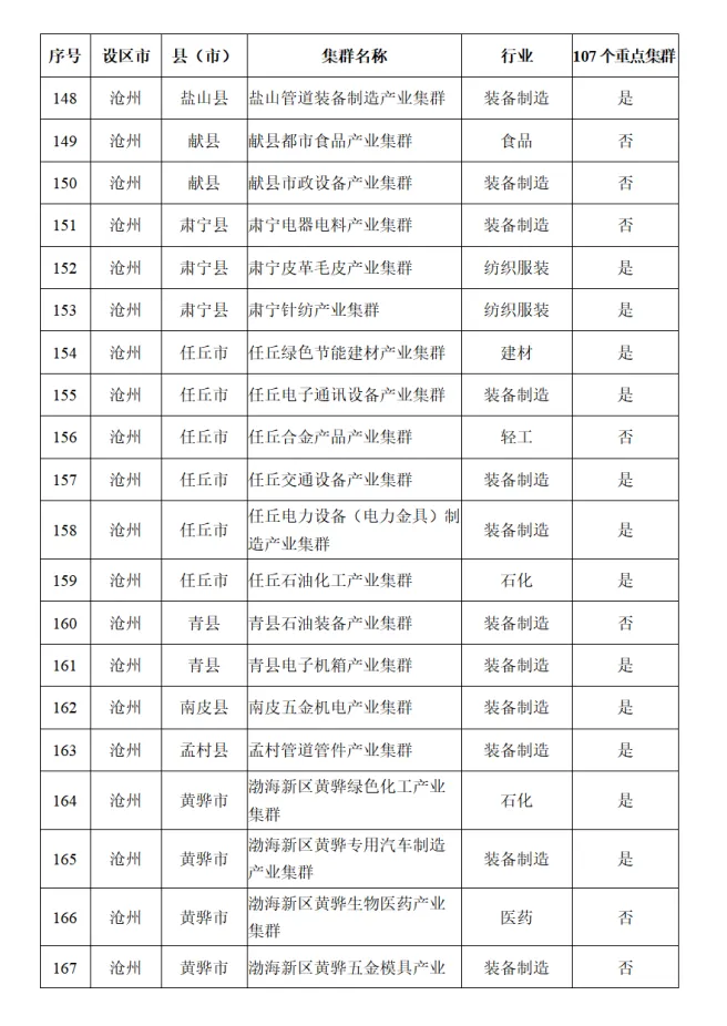 河北省县域特色产业集群名单