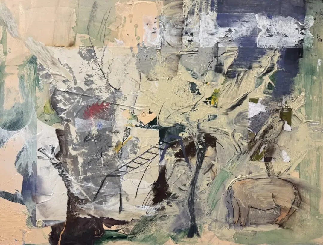 胡一叉将不同位面的经验符号截取、叠加、并置。人的形态被压缩、遮挡、拆解,日常物件若隐若现。