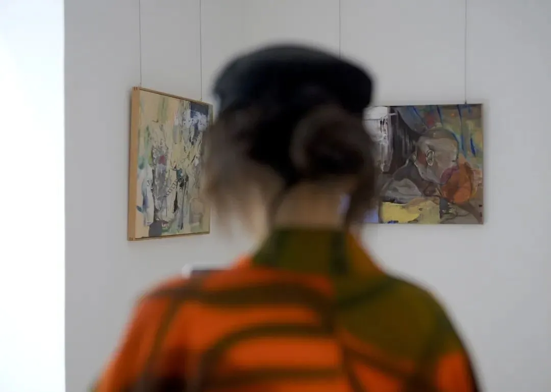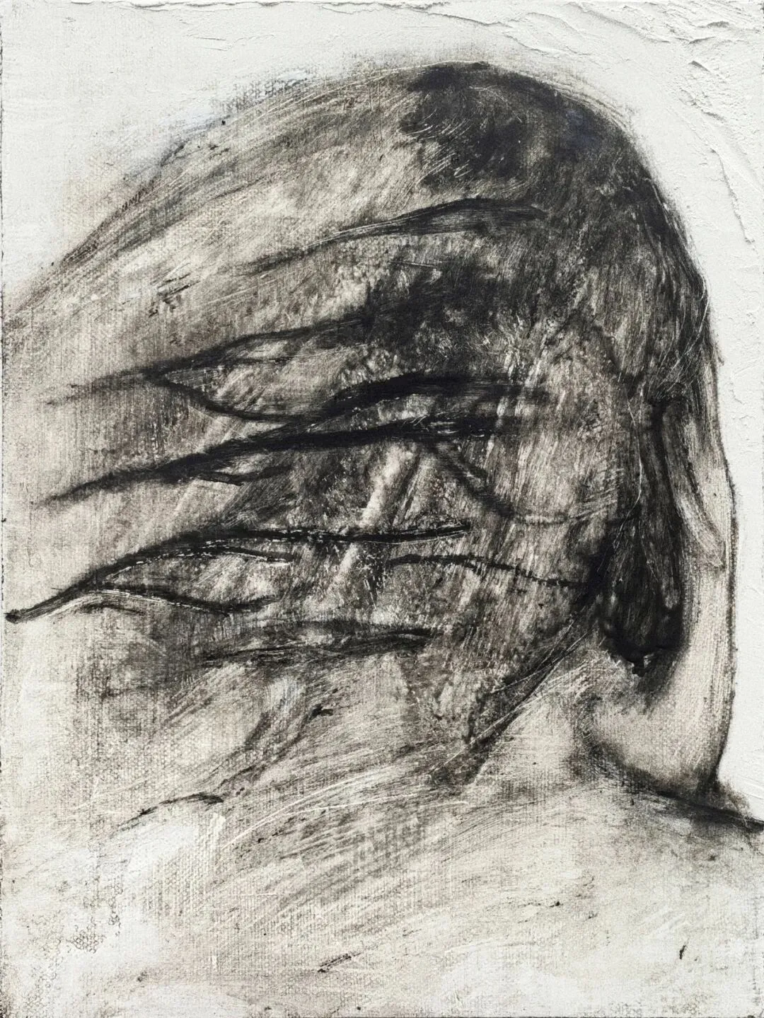 艺术家运用冷蜡这种媒介特有的哑光和绒感,用轻旋,风痕般的笔触传达了那些指向存在的“目光”