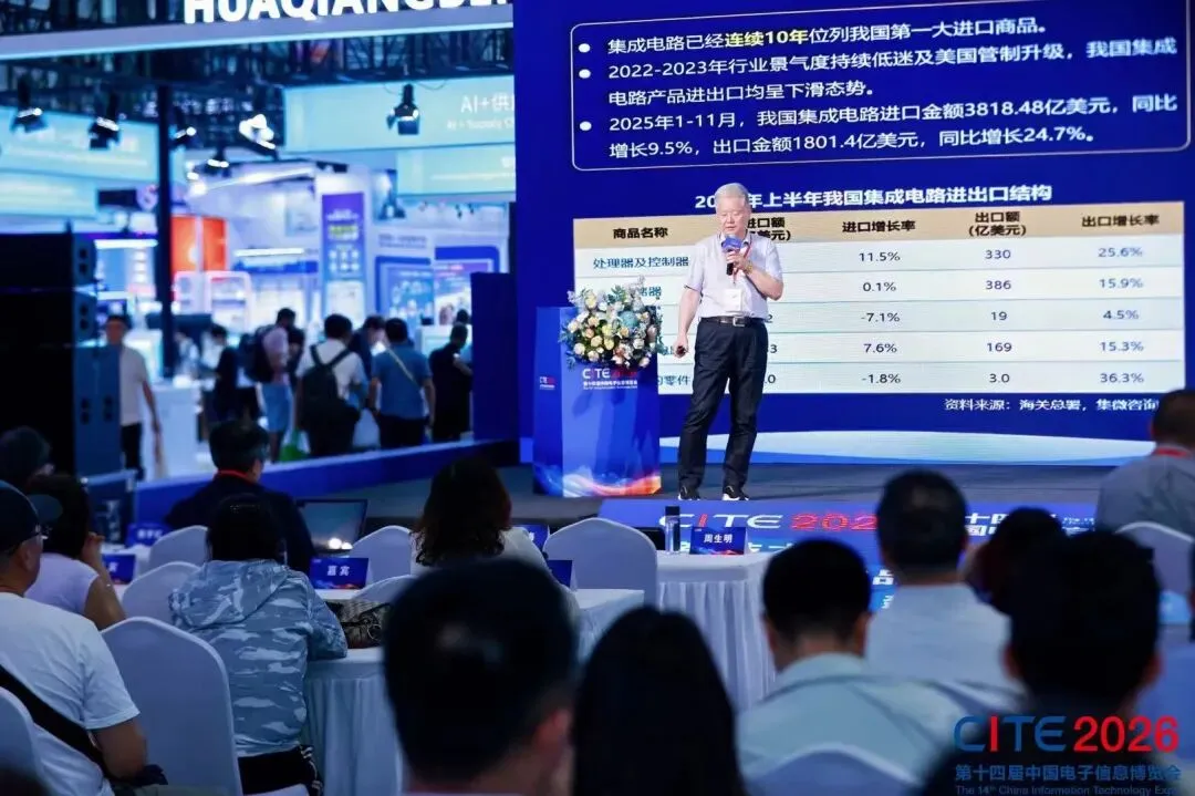 2026年4月9日至11日,第十四届中国电子信息博览会(CITE2026)在深圳圆满落幕。本届展会汇聚产业龙头、科研机构与创新先锋,从国产集成电路的供需破冰,到数据要素治理的前沿思辨;从国防科技融合的精准对接,到湾区品牌的T台首秀,再到AI硬件的趣味落地——一场场重磅活动轮番登场,勾勒出中国电子信息产业的蓬勃生机与自主图景。