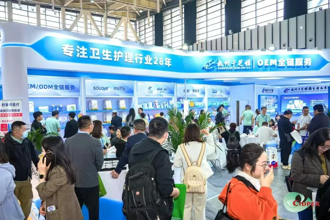 从轻度失禁护理方案到消毒级卫生巾,从功能性湿巾到可降解材料,从高速智能包装线到精密施胶喷嘴,品类丰富、特色鲜明,亮点纷呈,充分展现了浙江卫商的创新活力与制造底蕴。