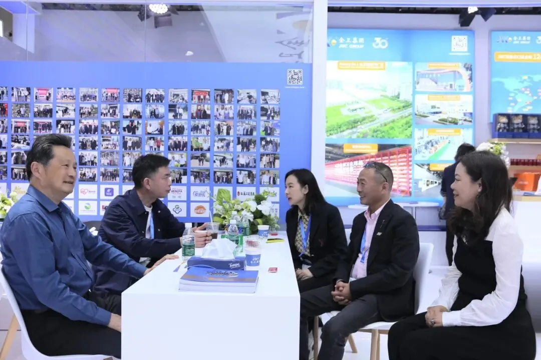 展会期间,浙江省卫生用品商会会长吴跃、荣誉会长金利伟等商会领导率秘书处一行深入展馆,走访部分会员企业展台。