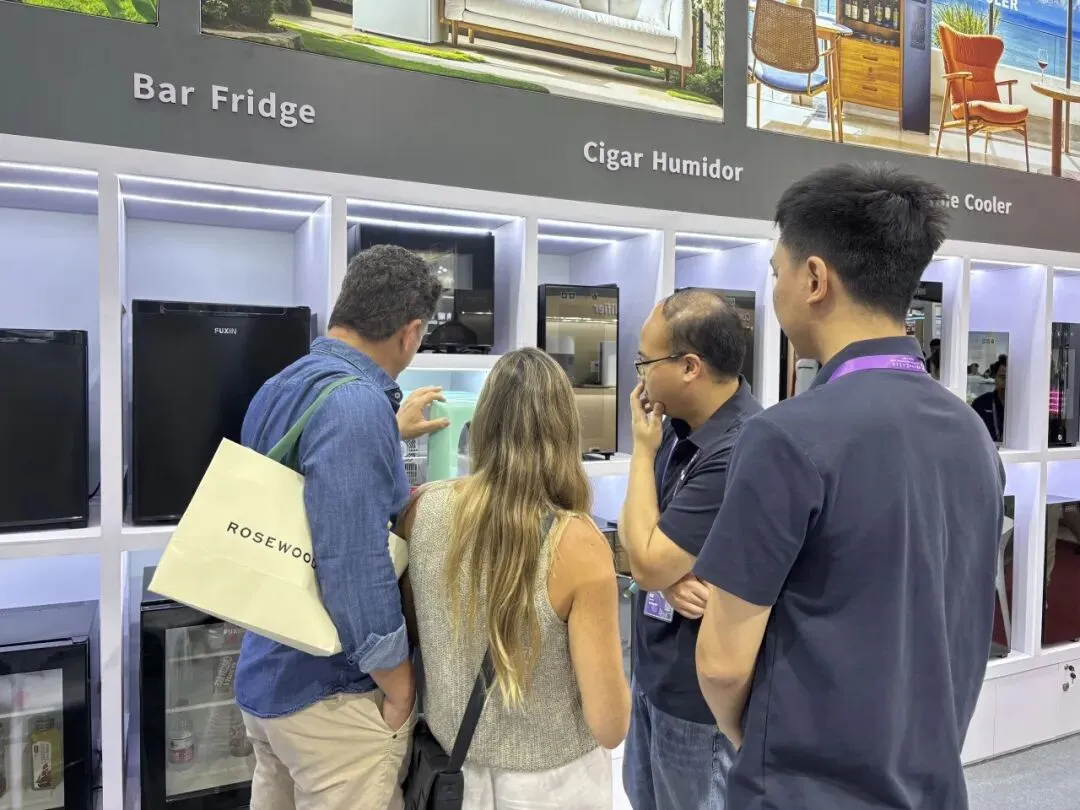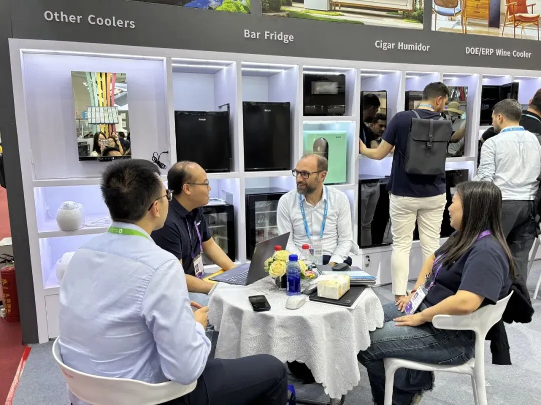 镜柜、酒柜、雪茄柜等产品也迎来多轮咨询。客户来自中东、欧美、东南亚等市场,应用方向涵盖酒店客房配套、个人便携温控等。