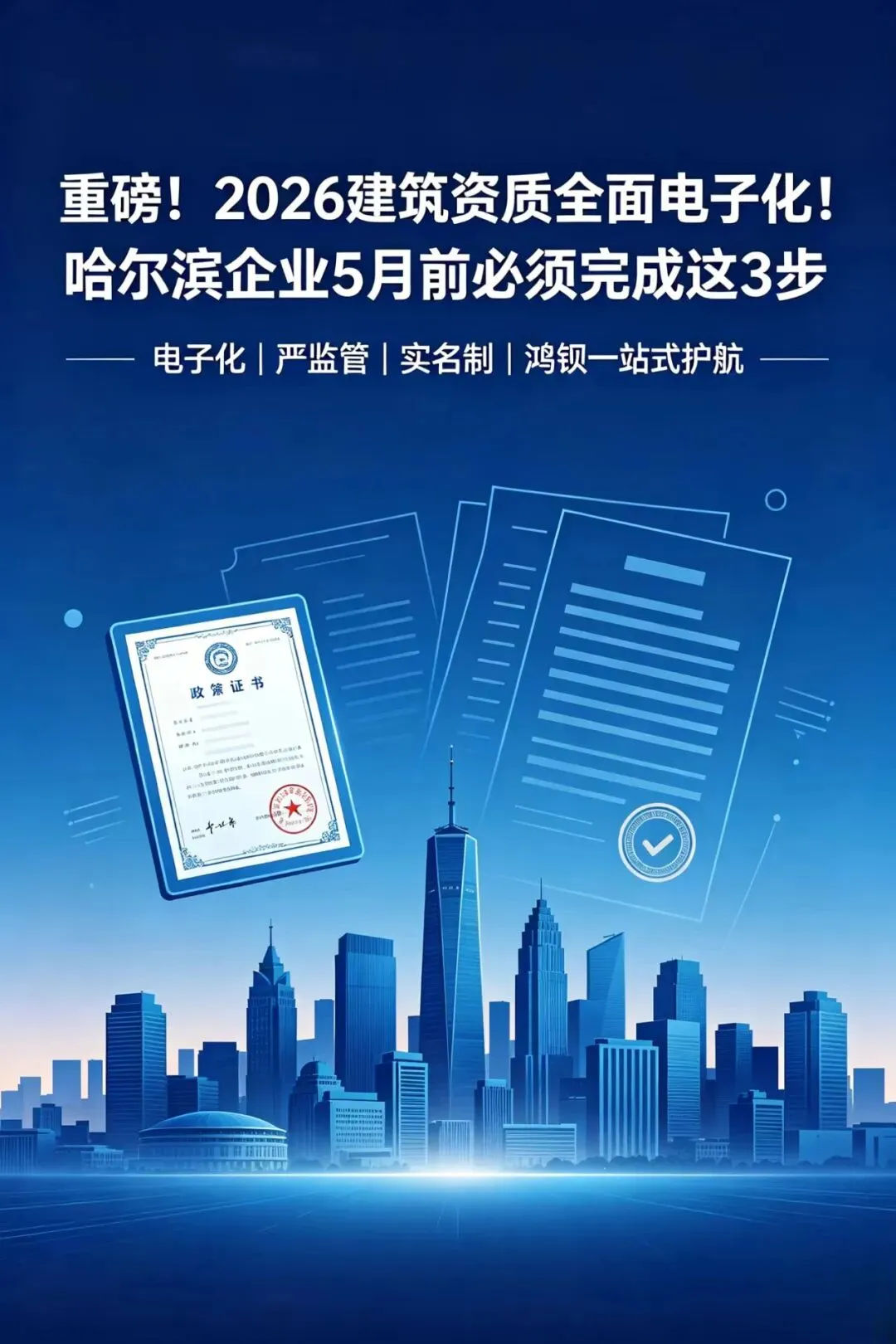 从资质全面电子化到6月起资质挂靠零容忍,从黑龙江施工招标电子化到实名制考勤升级,2026年建筑资质行业正经历“监管数字化、合规常态化、服务本地化”三大变革。对于黑龙江建筑企业而言,不仅要紧跟国家政策,更要适配本地细则,才能在行业洗牌中站稳脚跟。鸿钡企业管理结合最新政策与本地动态,拆解行业趋势与企业破局路径。