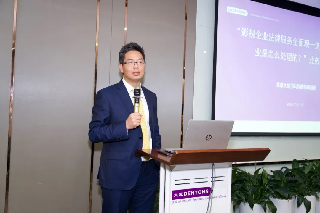 此次研讨会于2026年3月13日晚在北京大成(深圳)律师事务所成功举办。这是一场聚焦影视法律实务的盛会,由中国电视剧制作产业协会法务工作委员会、北京大成律师事务所、北京大成(深圳)律师事务所、深圳市律师协会联合主办。并由大成中国区消费休闲行业委员会,大成公司与并购重组专业委员会,大成科技、媒体与通信(TMT)行业委员会,大成知识产权与科技创新专业委员会,大成北京消费休闲行业组,大成北京公司与并购重组专业组,大成北京科技、媒体与通信(TMT)行业组,大成深圳知识产权与科技创新专业组,深圳市律师协会著作权法律专业委员会,福田律工委科创产业法律研究中心,深圳市律协软件与信息服务产业法律服务团协办的专题研讨会,在北京大成(深圳)律师事务所成功举办。大成深圳执行主任丁义平律师与董事局董事朱刘飞律师出席并致辞,大成深圳监事会监事、高级合伙人张勇律师、黄磊律师作为分享嘉宾参与研讨。此次活动吸引了众多来自影视制作、传媒发行及宣传公司的业内人士,为行业搭建了高质量的法律实务交流平台。