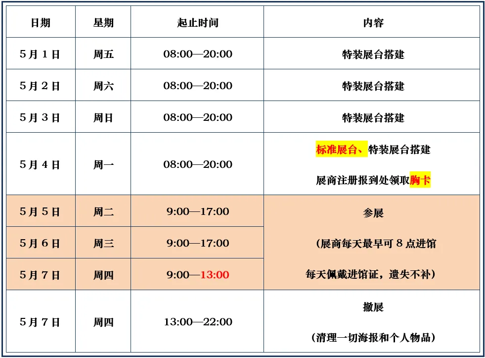 2. 着装:展会期间, 请男士穿西服戴领带,女士穿正式服装,请提前准备相应衣物。