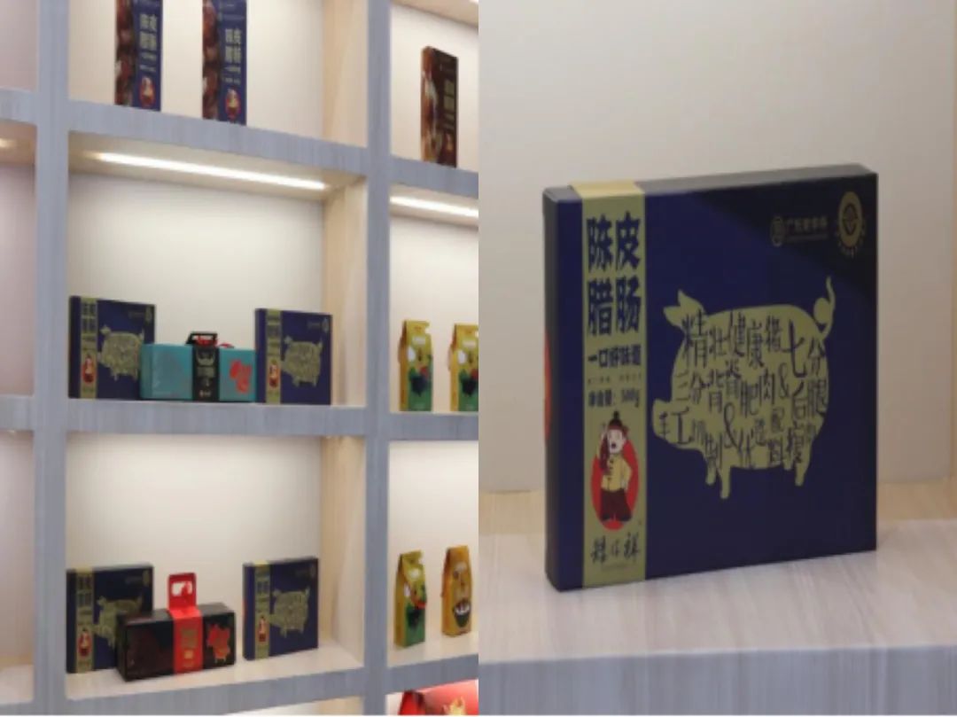 在国际特色食品展区的矮仔祥(广东)食品有限公司(以下简称“矮仔祥”)受到采购商的青睐。展架上摆满了各式各样的广式腊肠,其中一种陈皮腊肠曾登上广东卫视著名的美食节目《老广的味道》,更成为展出产品中的“亮点”。据介绍,以“矮仔肠”为代表的公司腊味制品,历经东莞高埗人吕佳及其后代共四代人传承,至今已拥有过百年历史,公司品牌“矮仔祥”也于2017年被授予“广东老字号”品牌称号。“高埗矮仔肠制作技艺”更于2015年被列入“广东省第六批非物质文化遗产项目”,2016年,第四代传承人吕衬婵(高埗新阶联副会长)被评为“广东省非物质文化遗产项目代表性传承人”。