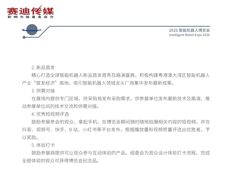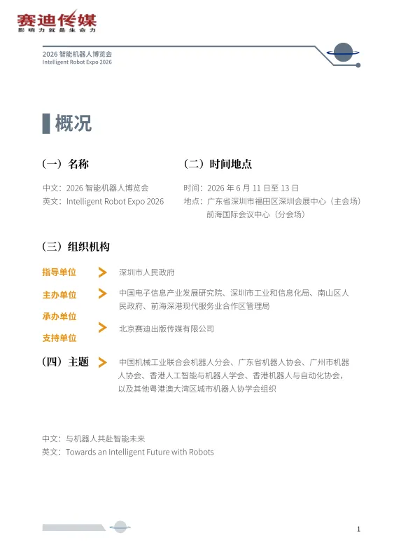 2026智能机器人博览会 | 定档2026年6月11日至13日--广东省深圳市福田区深圳会展中心(主会场)前海国际会议中心(分会场)