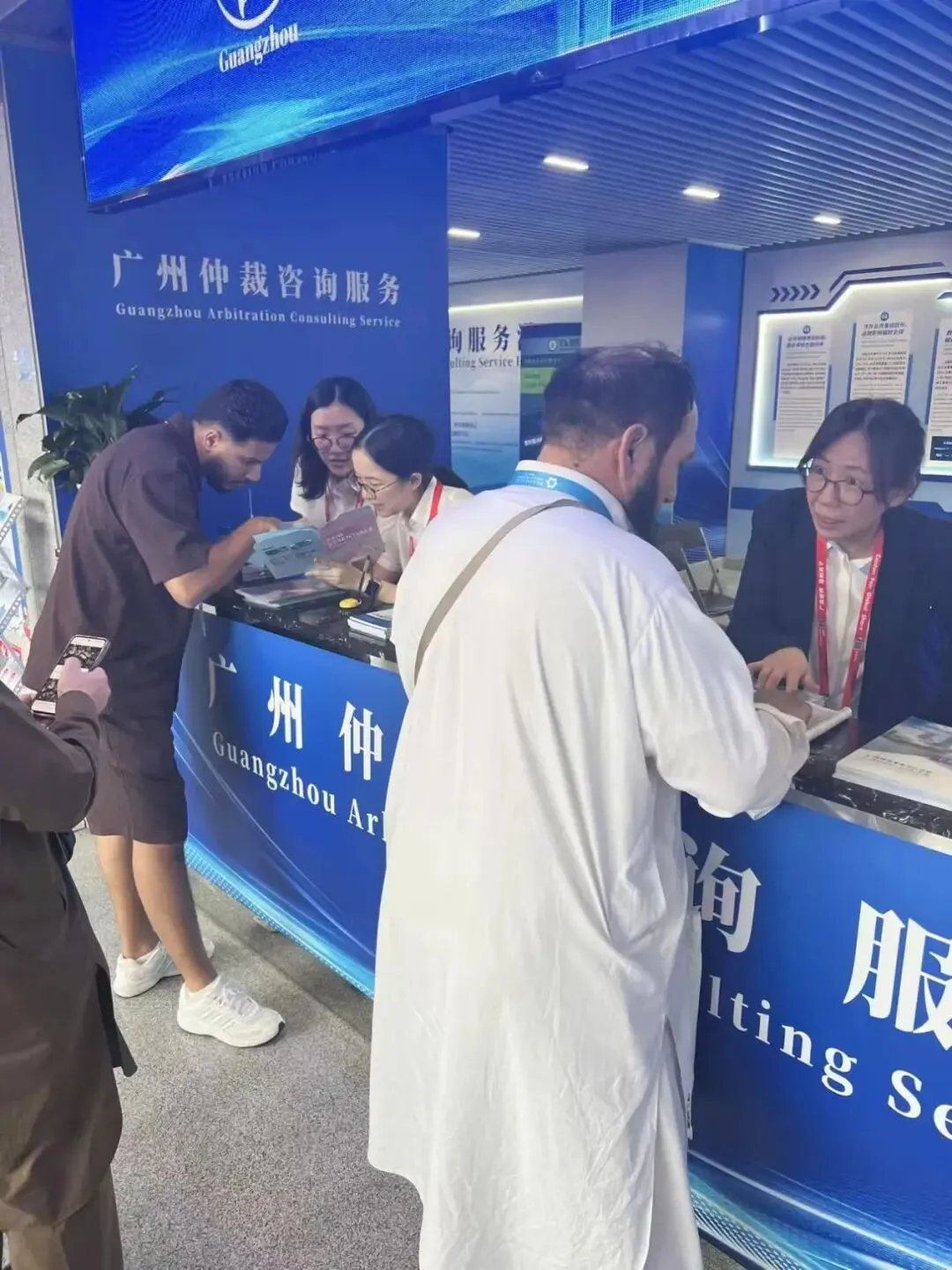 截至展会第二天,广州仲裁委驻点值班已接待境内外客商近40次,先后接访了美国、俄罗斯、沙特阿拉伯、埃塞俄比亚、巴基斯坦等14个国家和地区的参展商、采购商咨询仲裁法律服务。