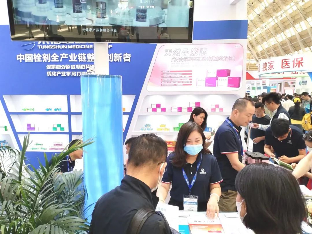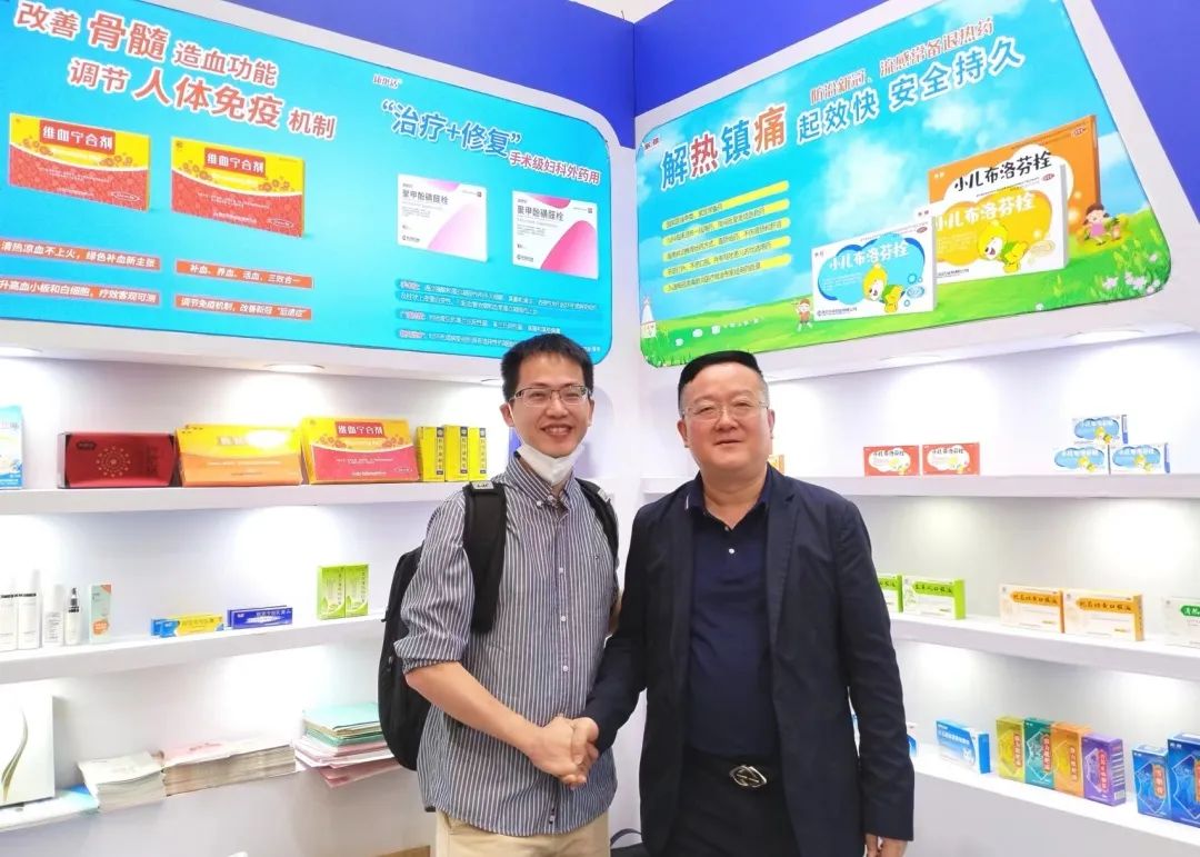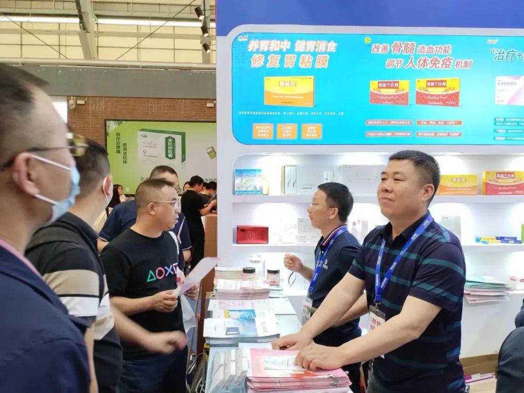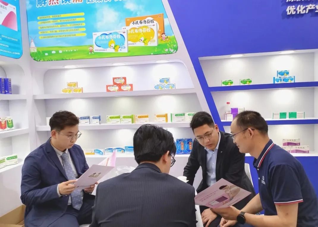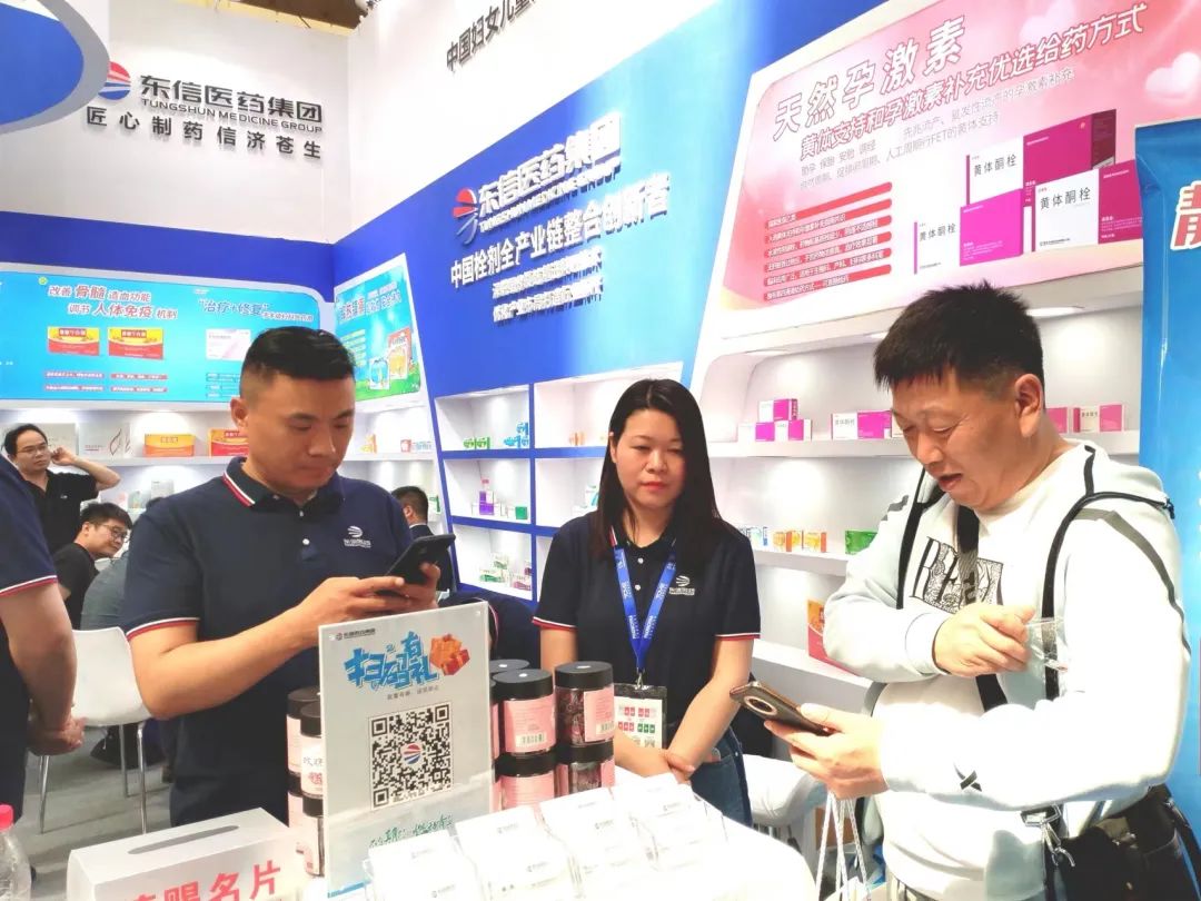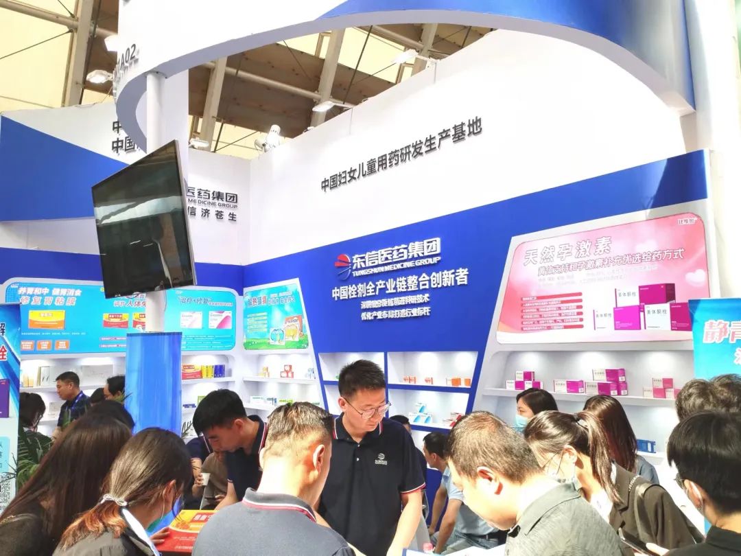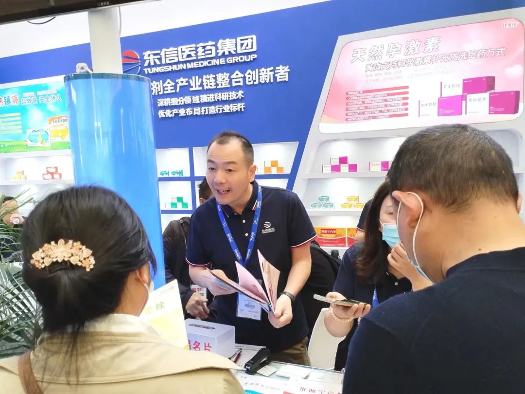 东信医药集团携黄体酮栓、小儿布洛芬栓、双氯芬酸钠栓、聚甲酚磺醛栓、维血宁合剂、猴菇饮等明星产品亮相展会,吸引了众多新老客户前来打卡拍照、咨询洽谈。