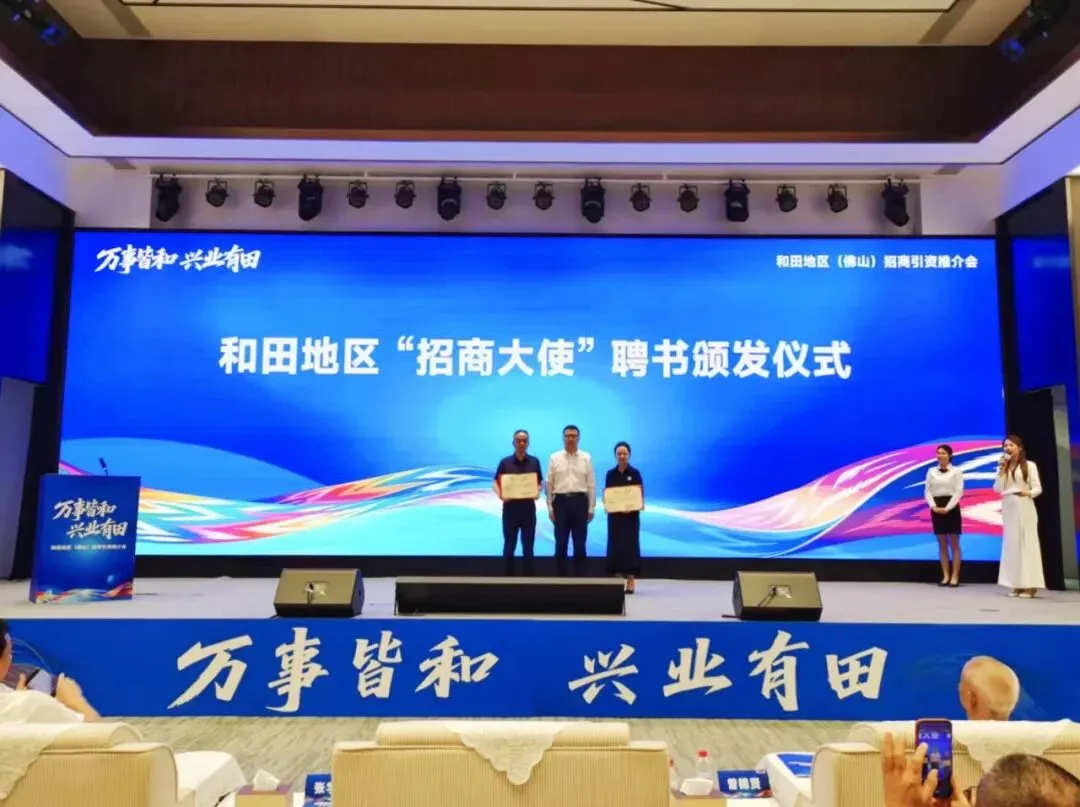 4月16日,和田地区(佛山)招商引资推介会在广东佛山举行,以“万事皆和兴业有田”为主题,聚焦纺织服装产业精准招商,共话产业合作、共商发展大计。