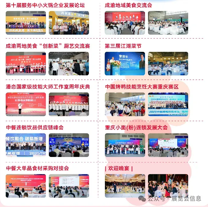 每届重庆火锅展期间,都会举办十余场职业技能大赛和高峰论坛,吸引大量行业精英现场参与,参展商可以通过活动赞助的形势直接与行业决策者交流探讨,实现产品的精准曝光。