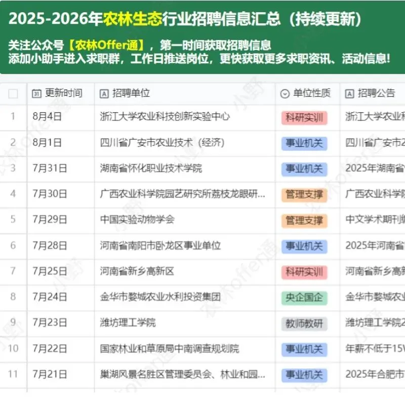 -适合人群:农林生态相关专业在校生、应届生、各阶段社会从业人员,了解最新就业资讯、招聘信息。
